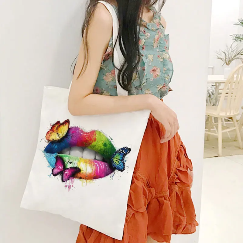 Женская Холщовая Сумка-тоут с принтом в виде бабочек и губ