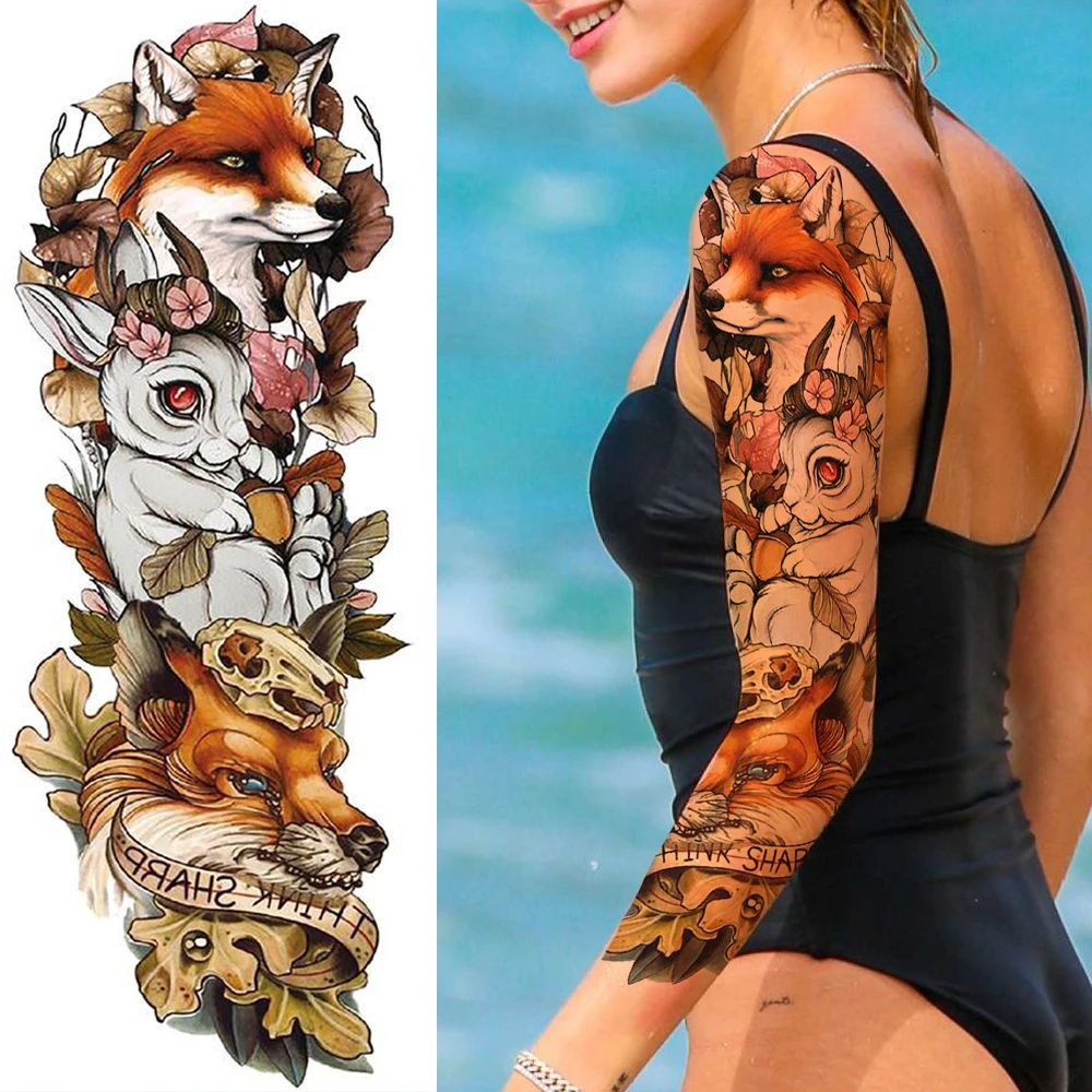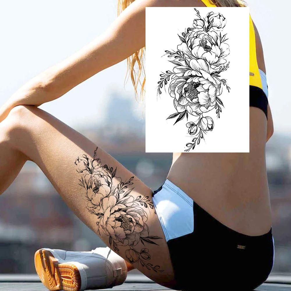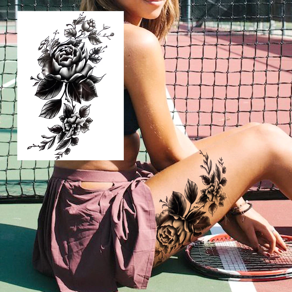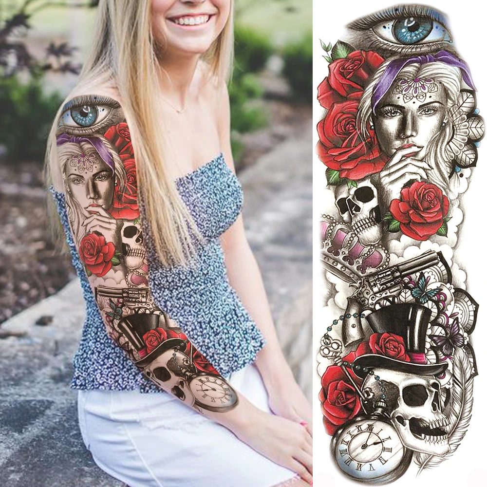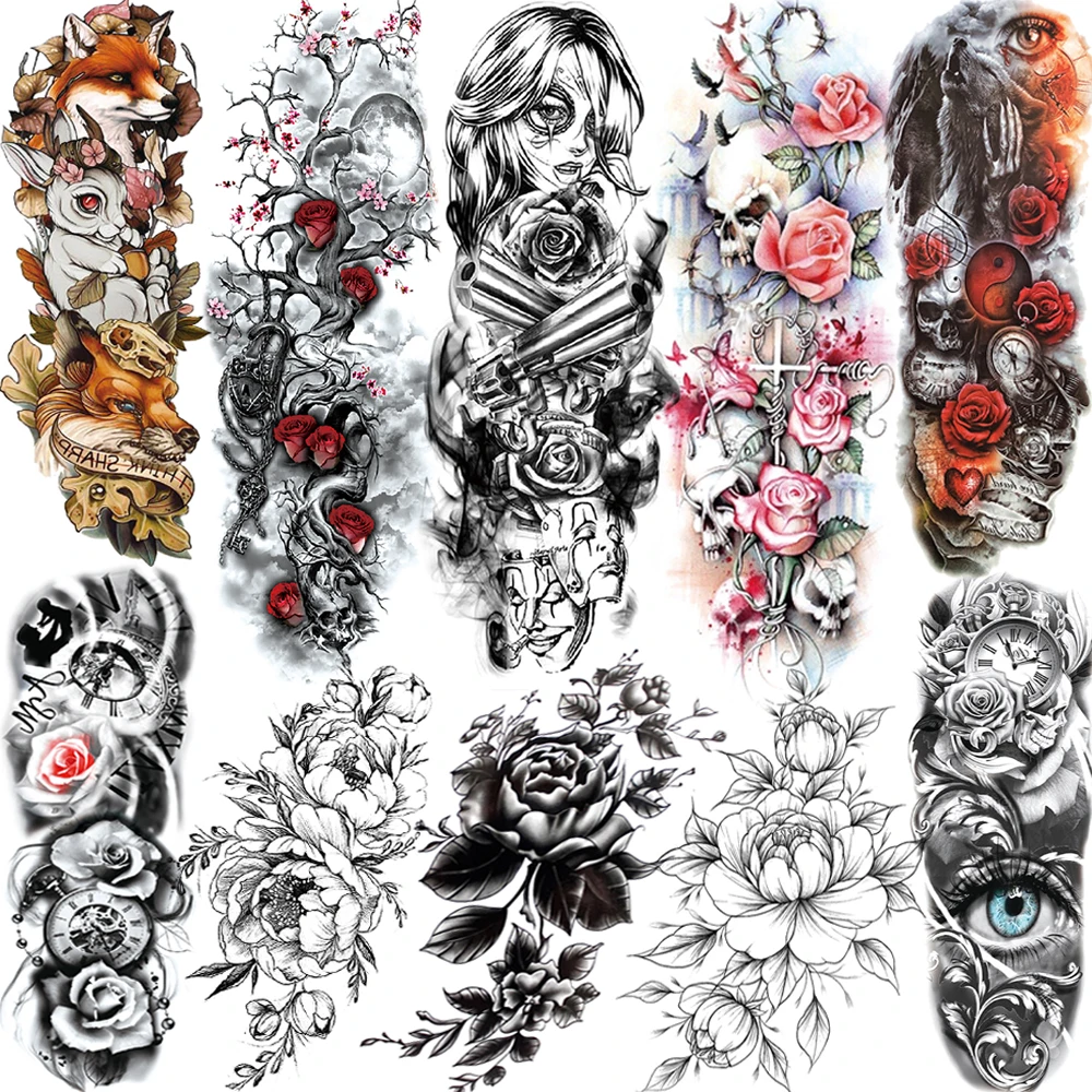 Разноцветные временные татуировки в виде черепа розы для женщин и девочек, реалистичные Моющиеся 3D татуировки с пионами на всю руку