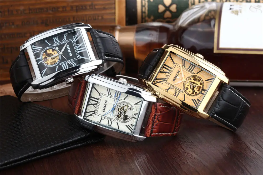 2020 Relogio Masculino Модные прямоугольные часы мужские наручные часы GOER автоматические механические часы низкая цена Прямая поставка