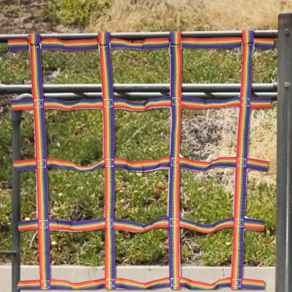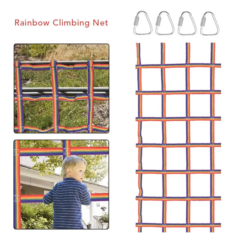 Название: сетка для альпинизма с радугойЦвет: черный/цвет насыщенныйРазмеры: около 90 дюймов x 48 дюймовМатериал: нейлонВес: 0,95 кгОписание несущего материала: одна лямка весом более 250 кгУпаковочный лист:1 * альпинистская сетка4 * треугольные крючки