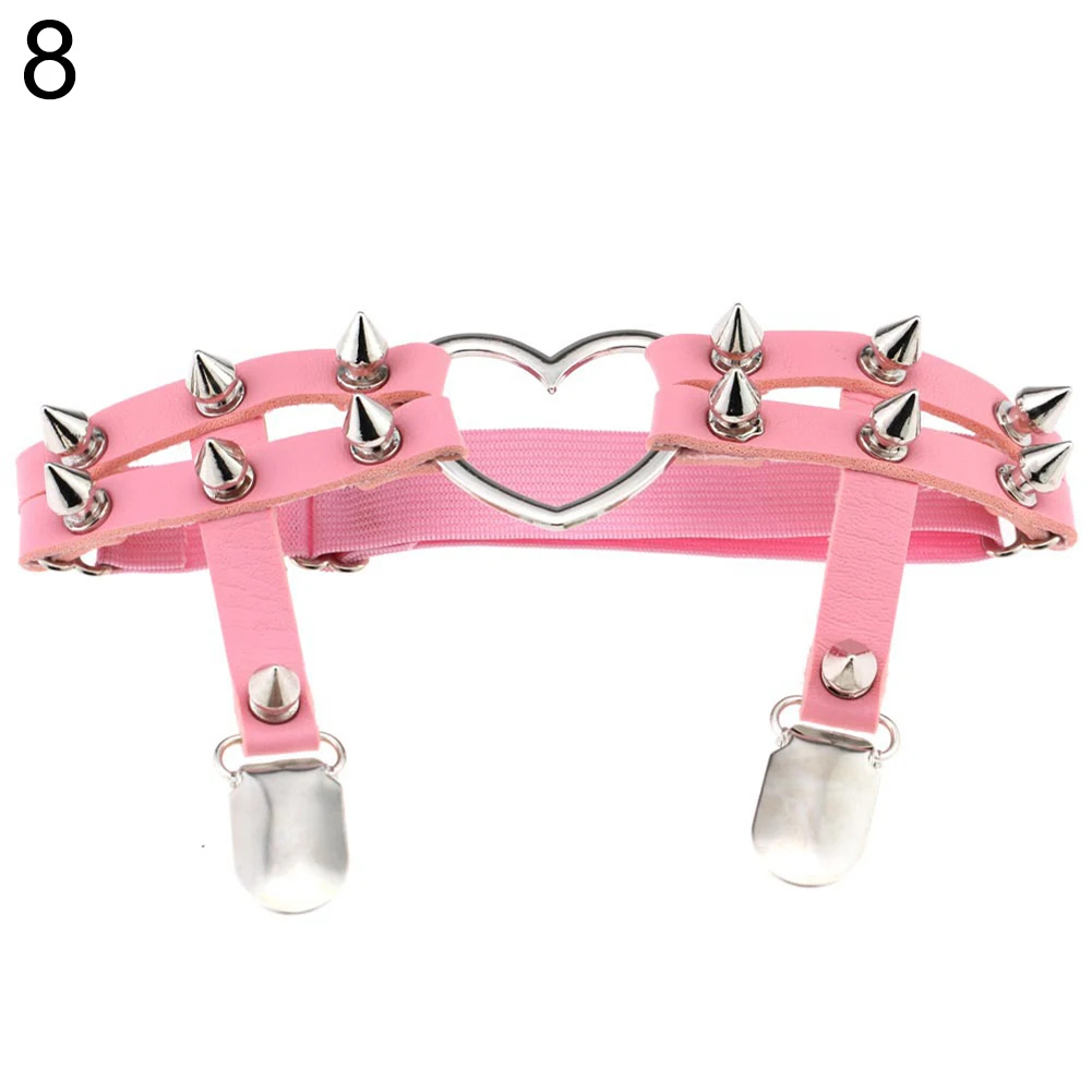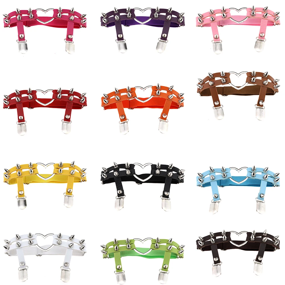 Женские подвязки с шипами в виде сердца, модная панк готика, Харадзюку, подвязки с шипами в виде сердца, эластичные подвязки на бедрах