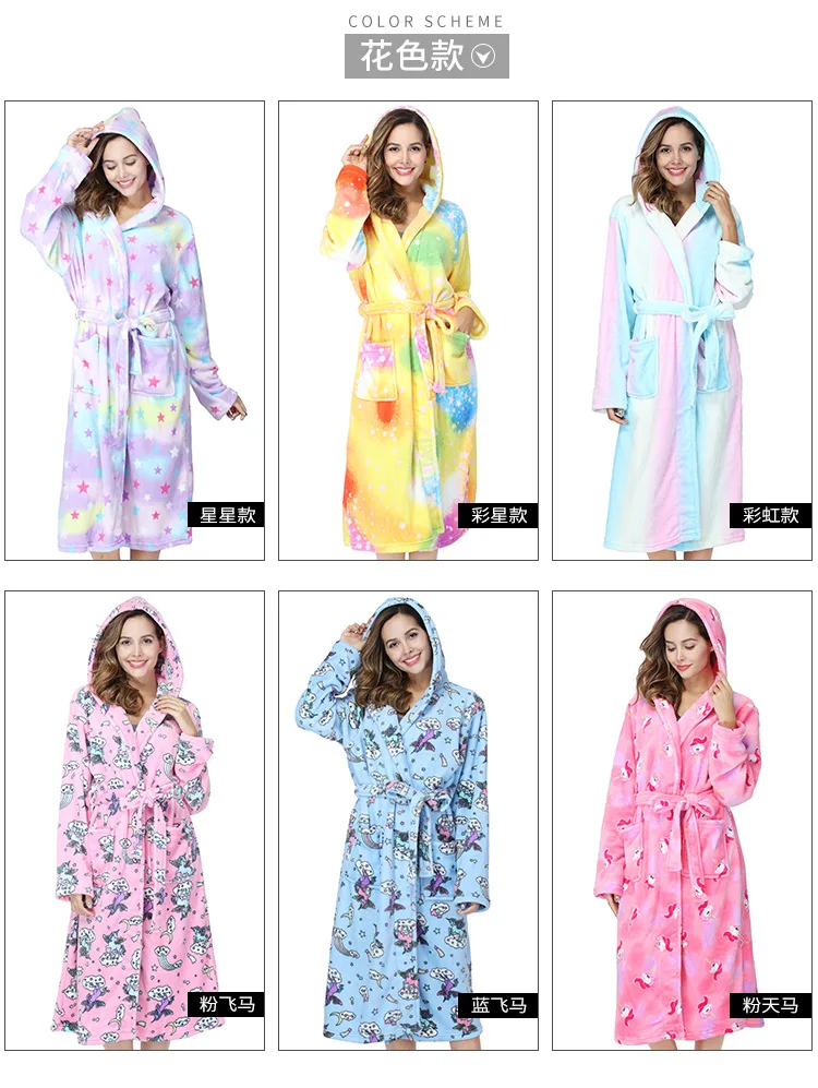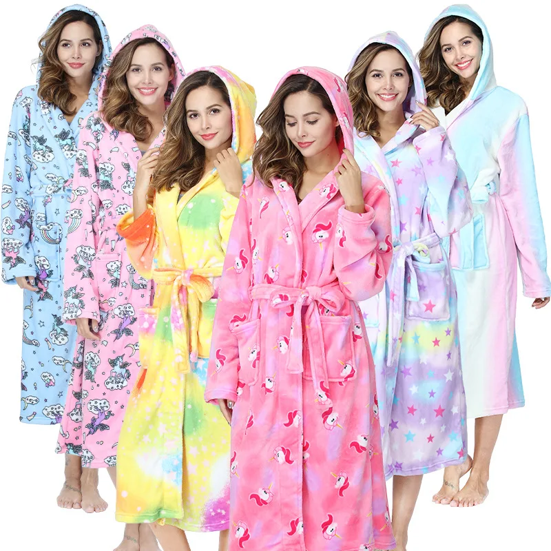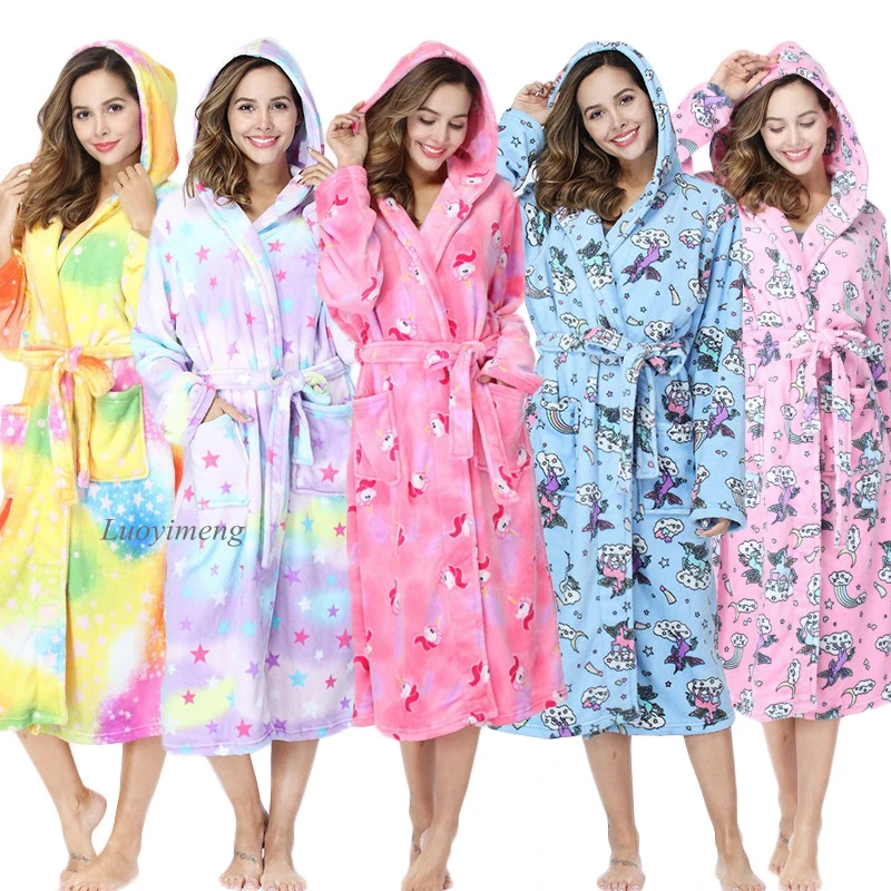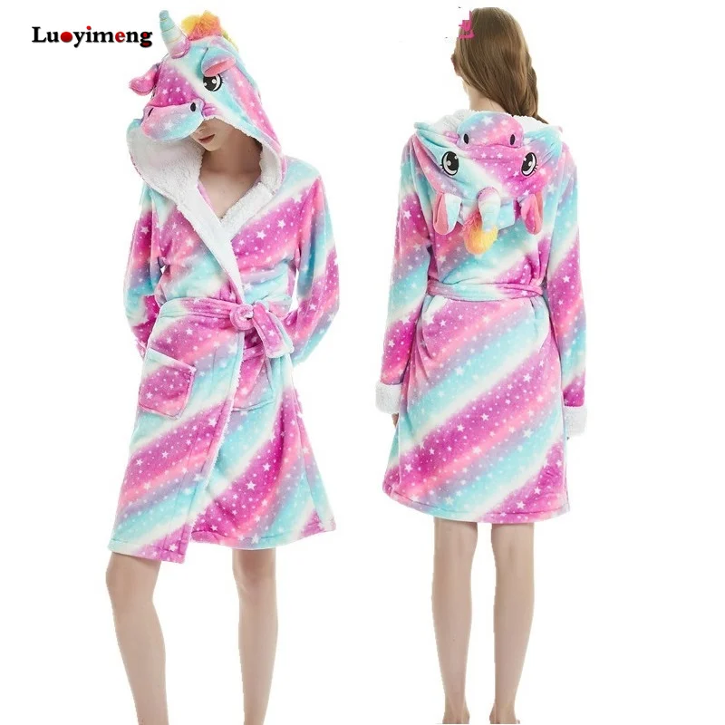 Фланелевая одежда для сна для взрослых с животными, Женский банный халат, халаты с единорогом, купальный костюм, женская пижама, халат из кораллового флиса