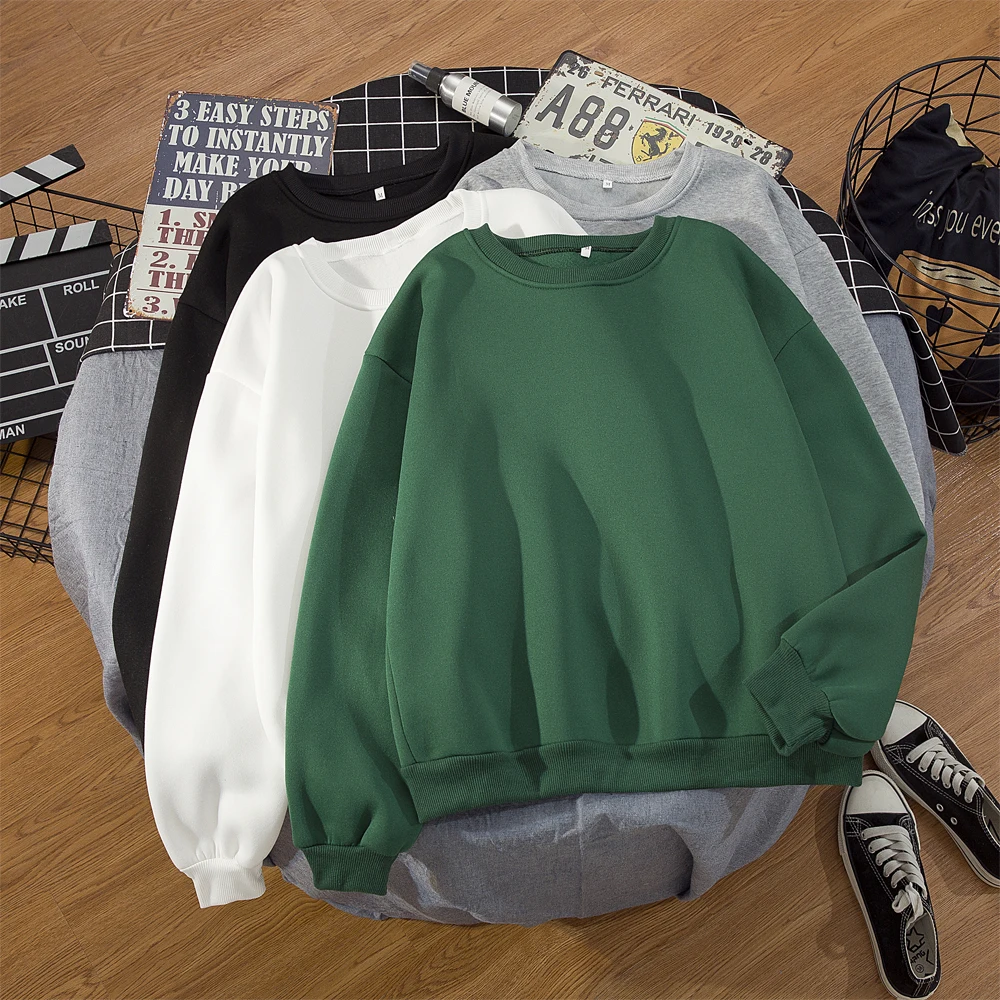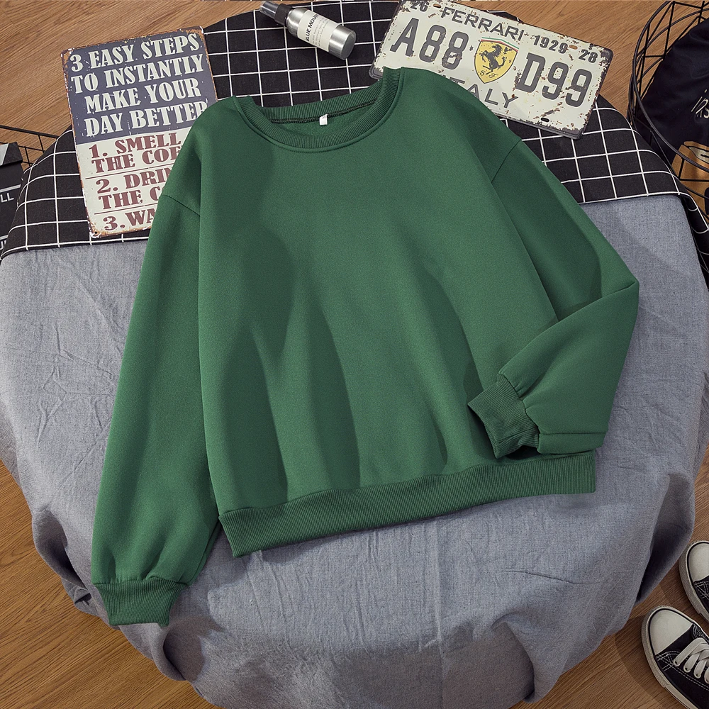 Свитшот женский осенне-зимний, однотонный, с длинным рукавом, свободный, с круглым вырезом