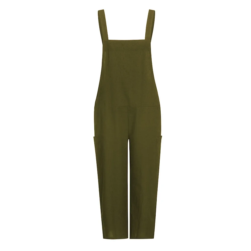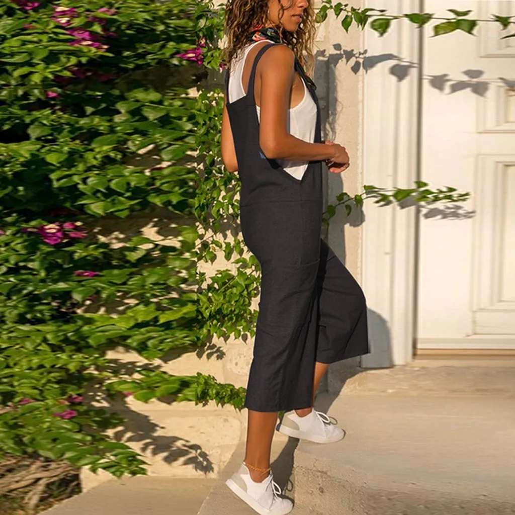 Женский комбинезон без рукавов, Свободный Длинный комбинезон из хлопка и льна, праздничный комбинезон