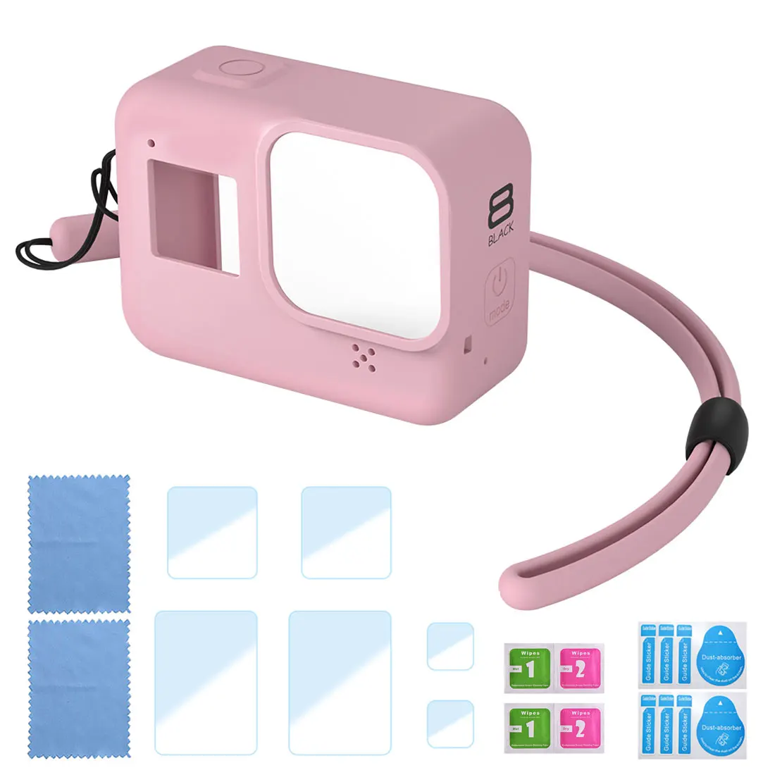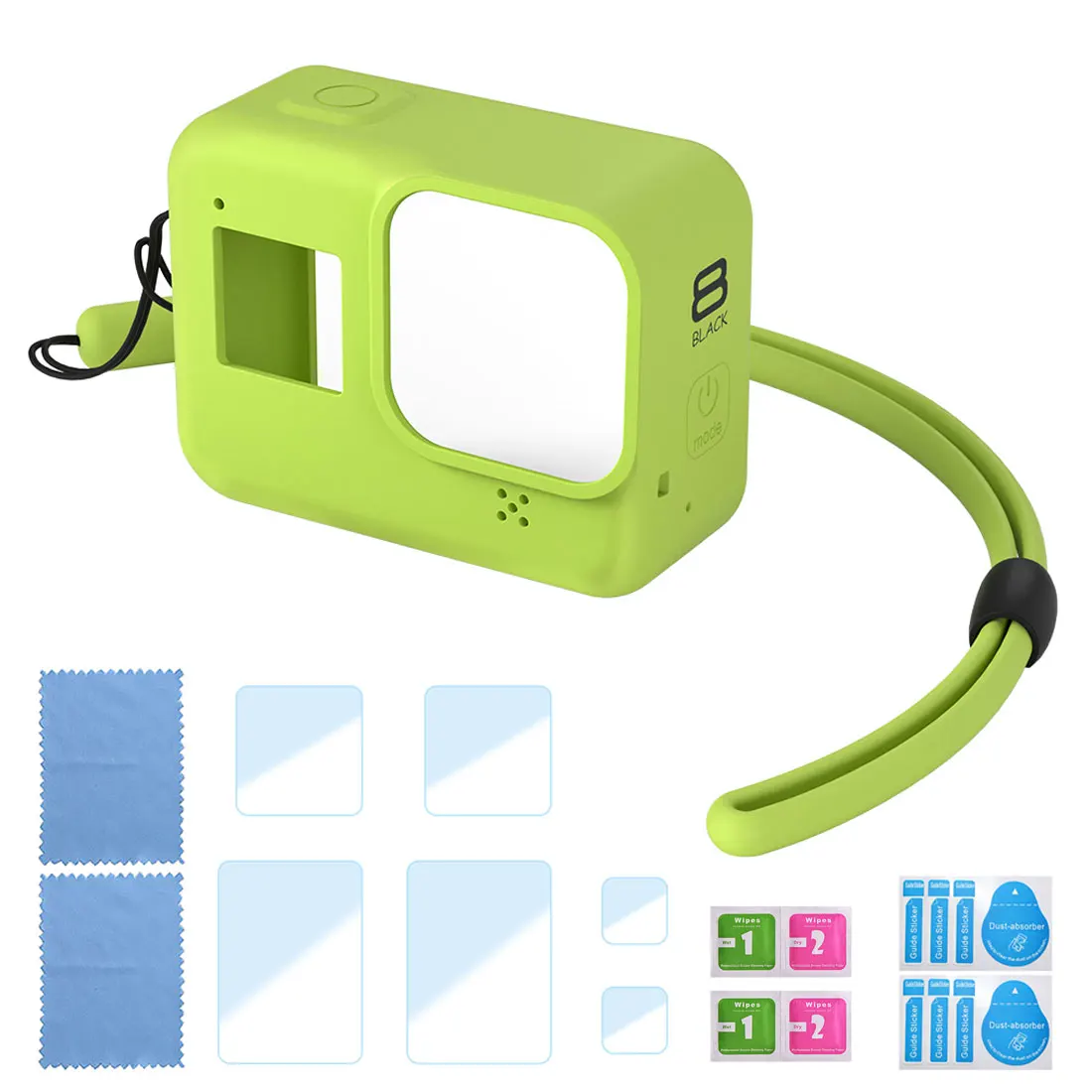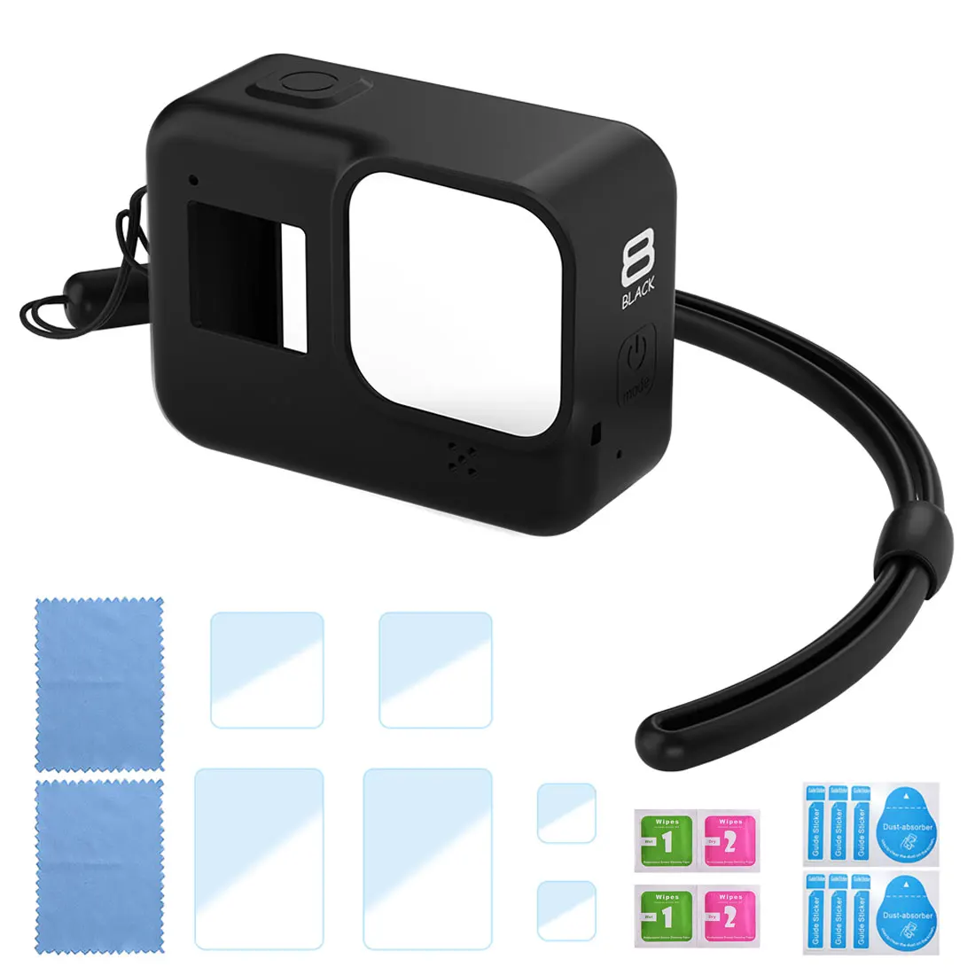 1 x силиконовый защитный чехол для GoPro Hero 8 Black1 основание1 х длинный винт1 x ремешок1 х Набор закаленной пленки