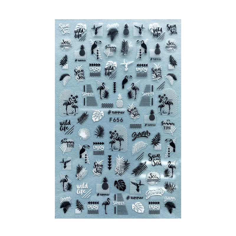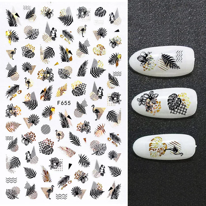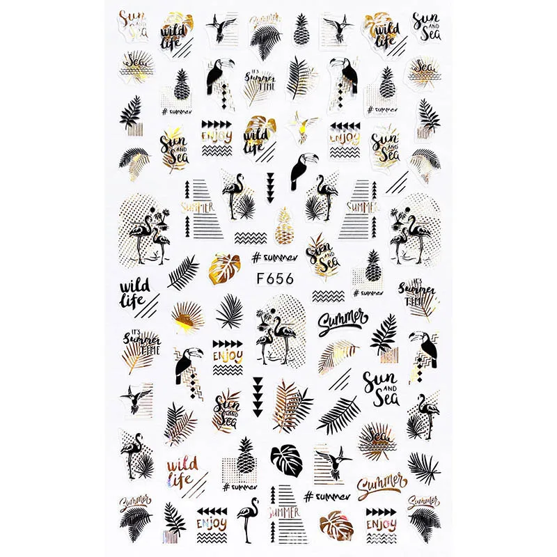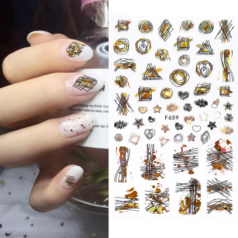 3D-Наклейки для ногтей, 1 шт., летние блестящие, золотистые, черные...