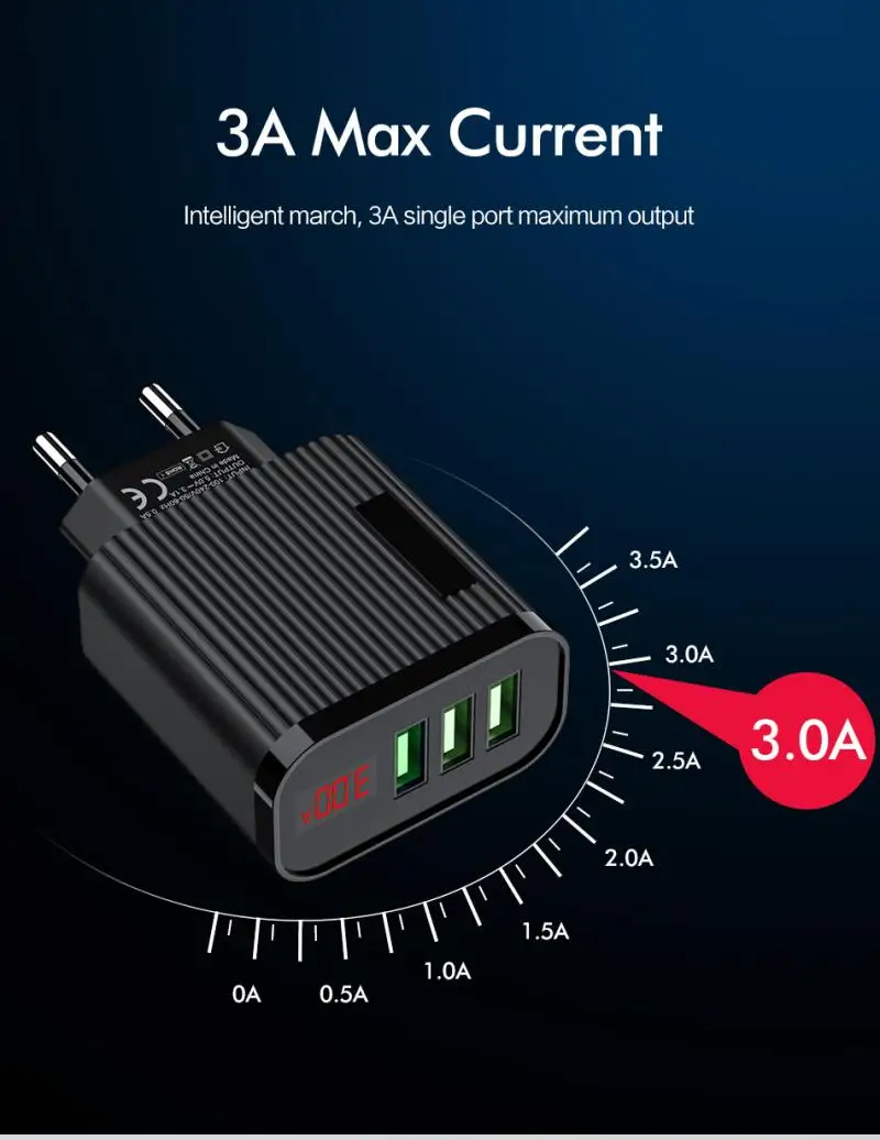 Модель продукта: зарядное устройство с 3 usb-портами для цифровой дисплей полоса зарядная головка