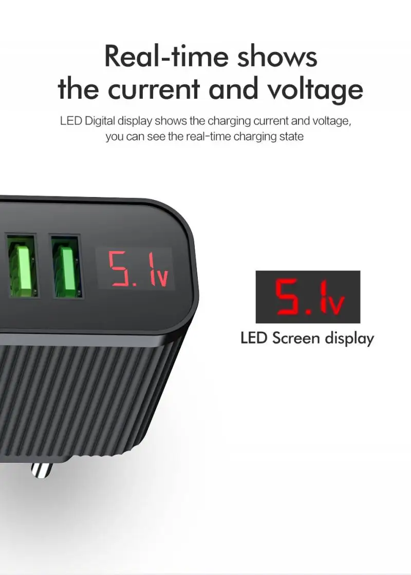 Портативное зарядное устройство для телефона с цифровым дисплеем, 3 USB-порта, 3 А, умное быстрое зарядное устройство, дорожное зарядное устройство, адаптер для Huawei, Samsung, аксессуары