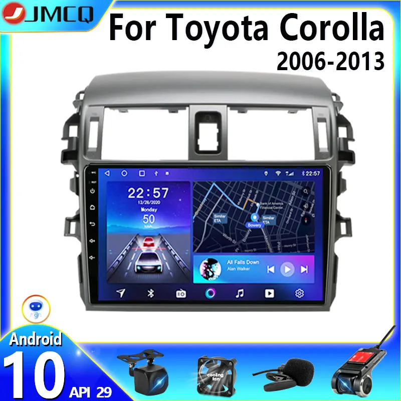 Автомагнитола JMCQ, мультимедийный видеоплеер на платформе Android 10,0 для Toyota Corolla E140150, 2006-2013, 2 din, 4G, GPS-навигация, экран AM