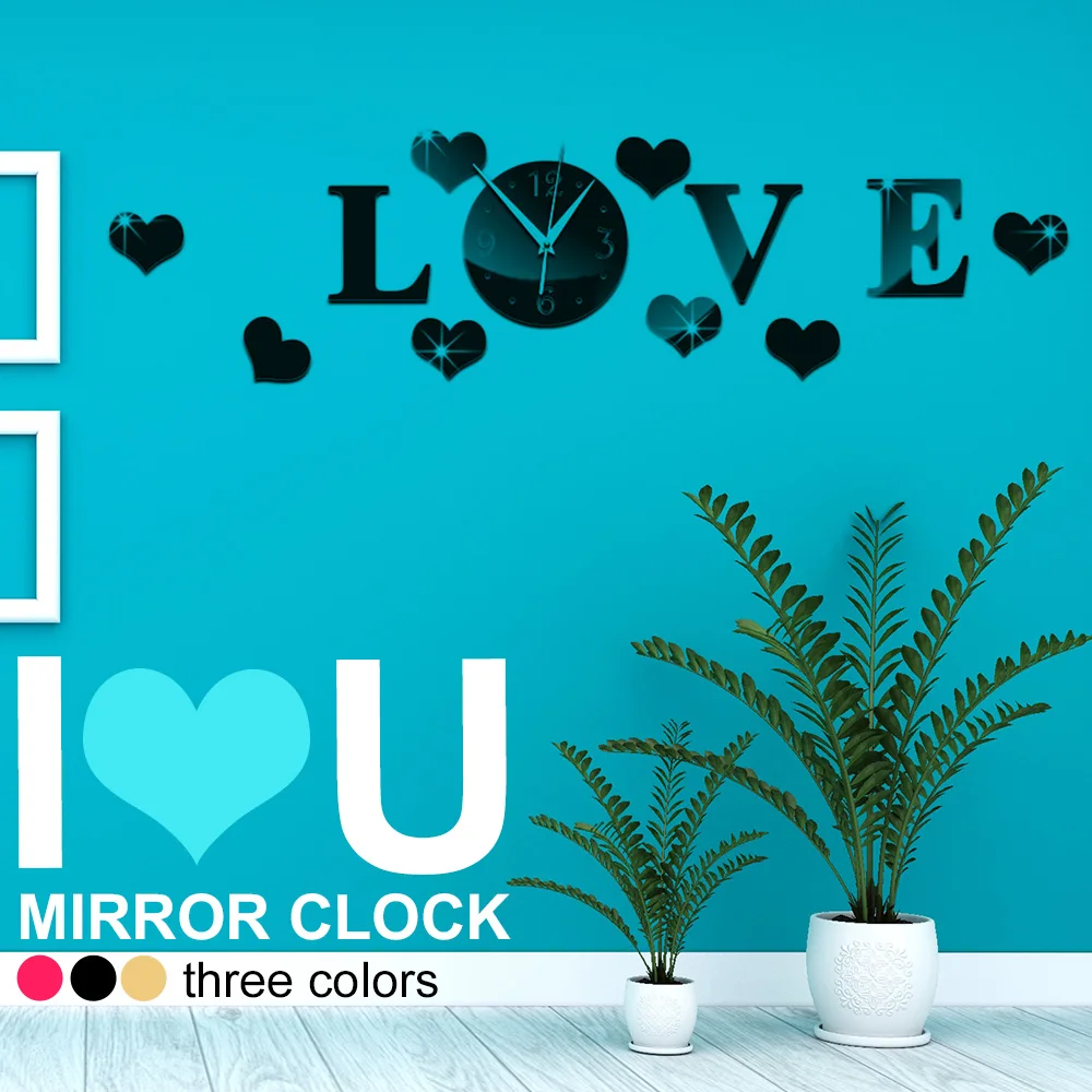 Настенные часы домашний декор наклейка на стену любовь настенные часы акриловые зеркальные настенные часы в форме сердца для гостиной креативные Diy часы