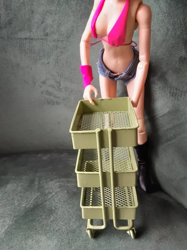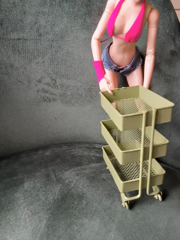 Кукольная миниатюрная полка 1:6, книжная полка с колесами, стеллаж для хранения, мебель для кукольного домика, аксессуары, 135*74*98 мм