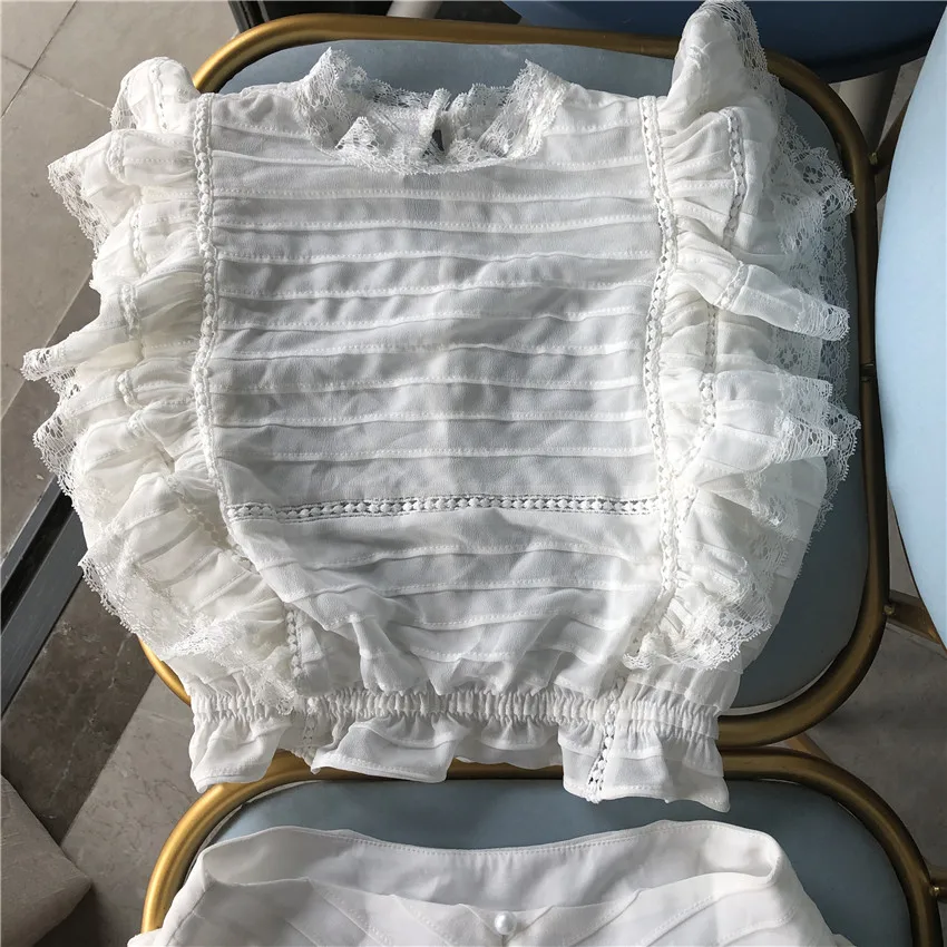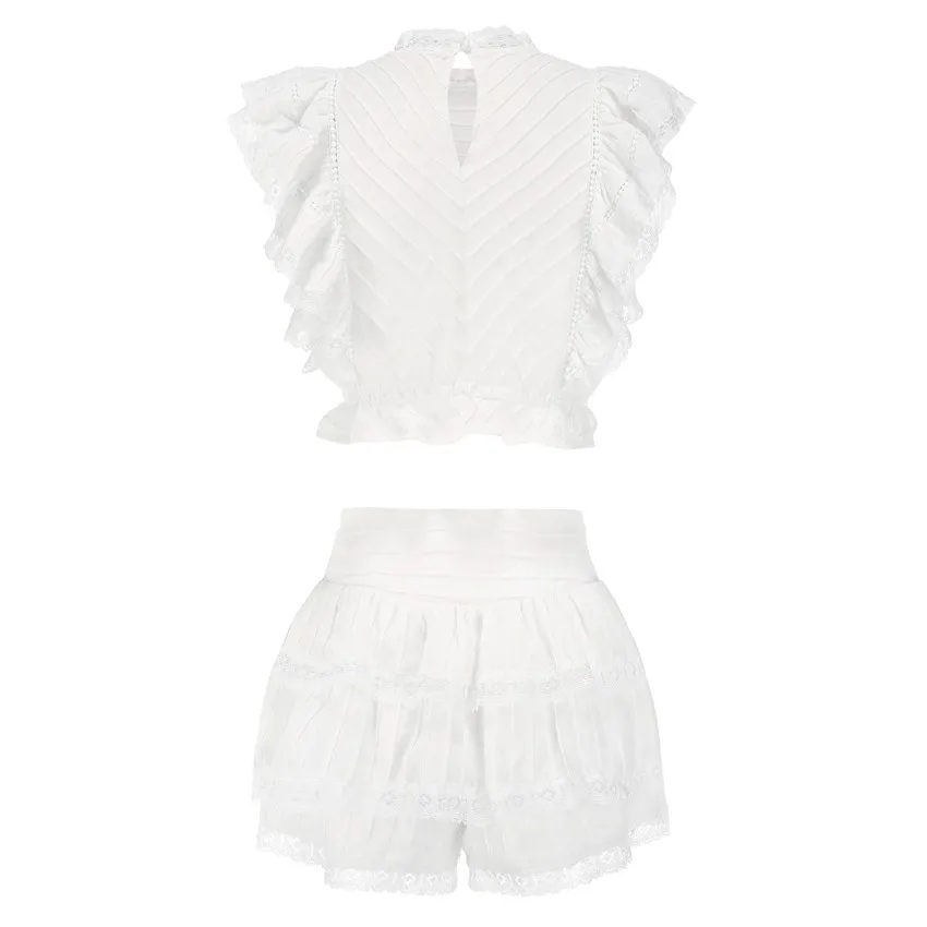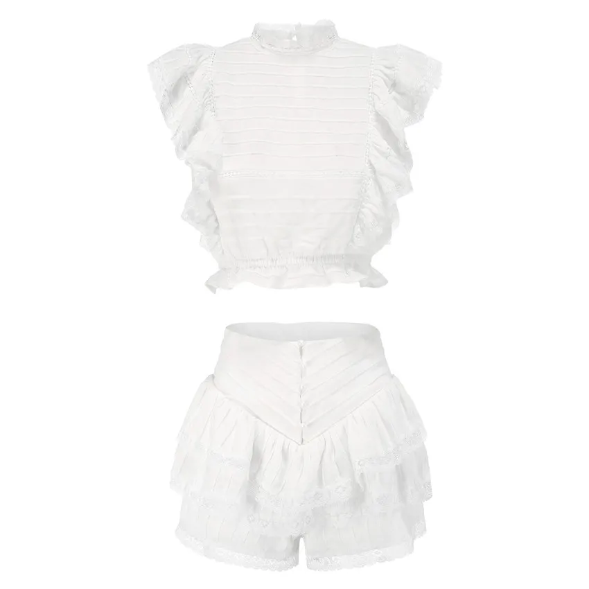 2022 летний сексуальный кружевной комплект с вырезами, женские костюмы, комплект из двух предметов с оборками, топ и шорты белого цвета