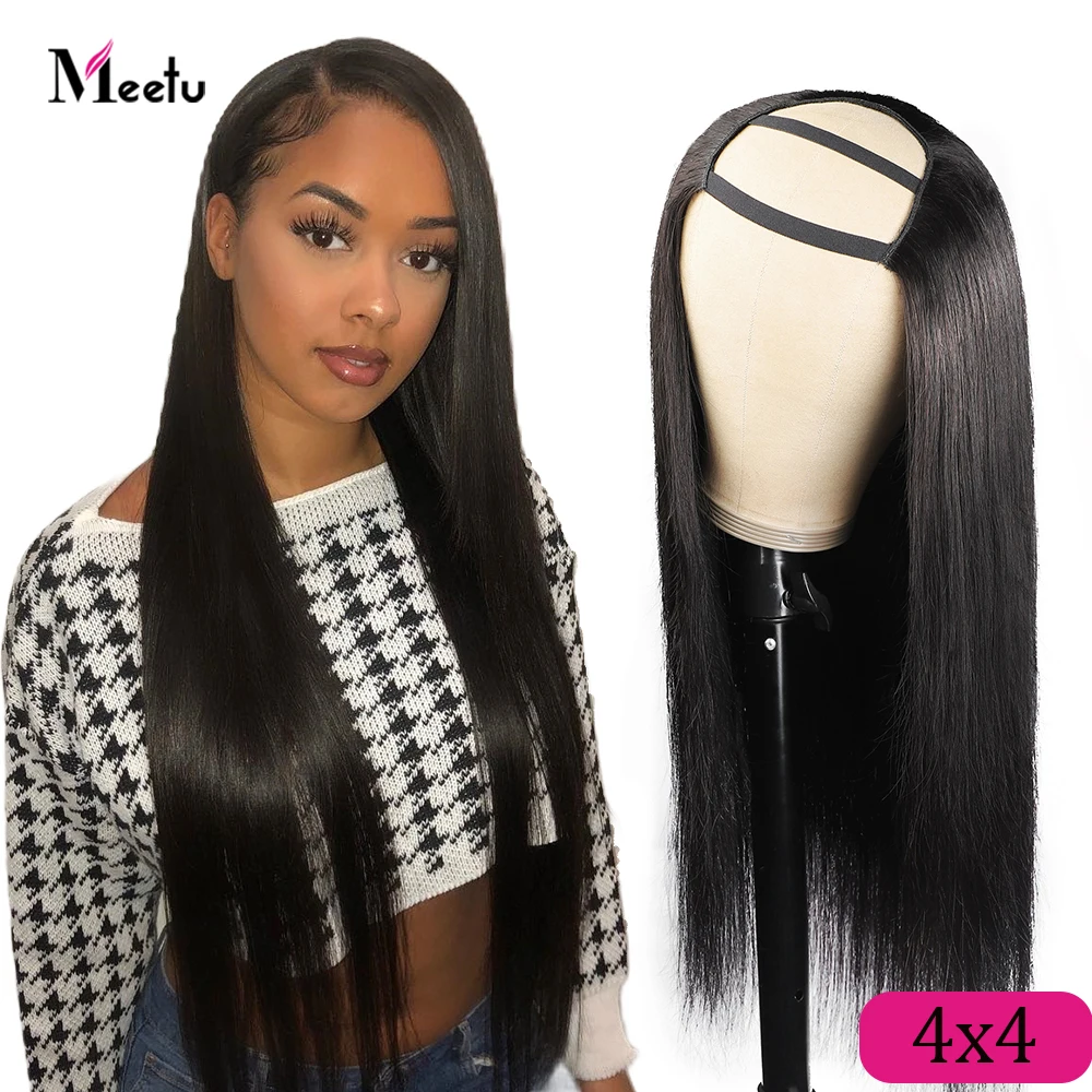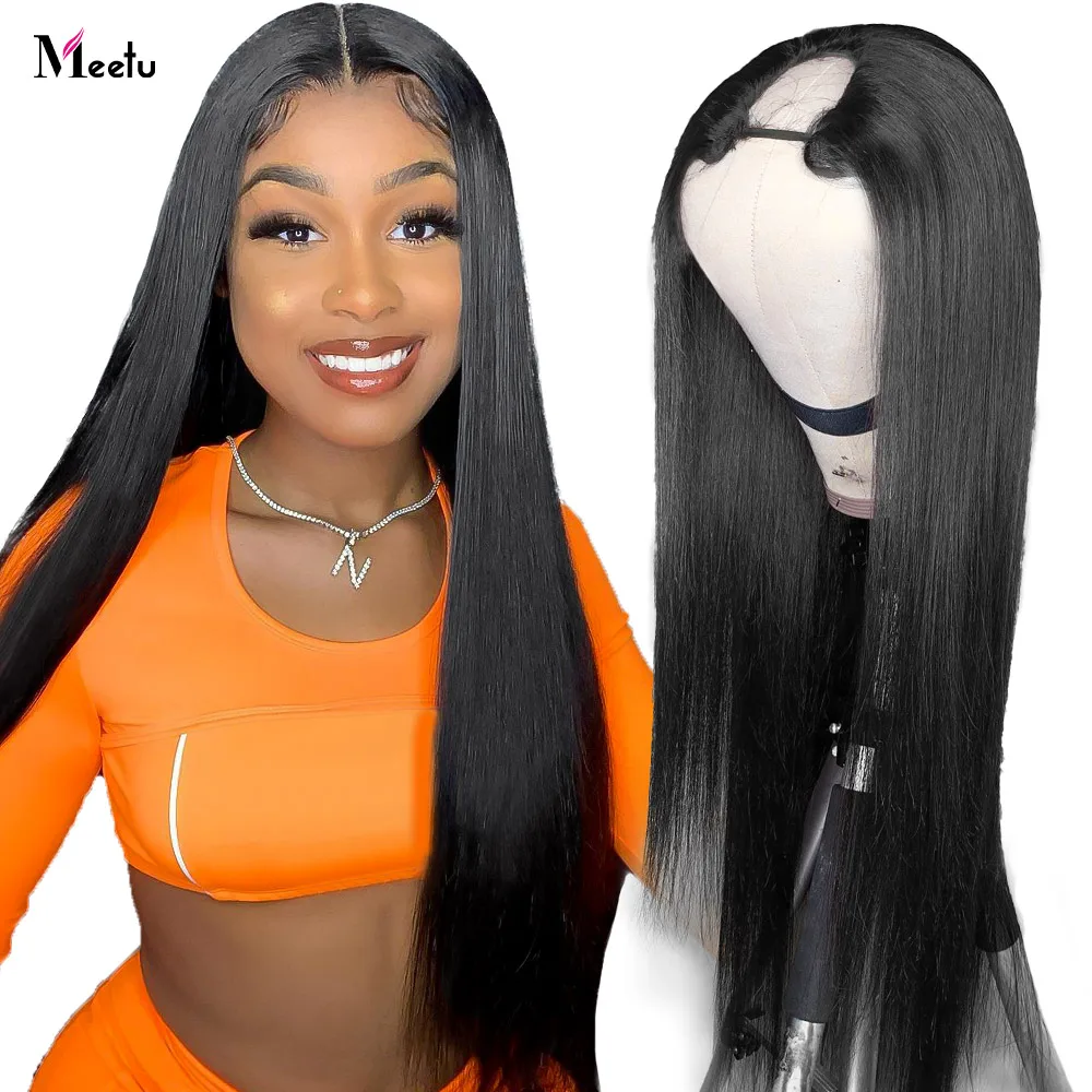 Парик Meetu U-Part из человеческих волос, парики без клея, 150% плотность, парики из человеческих волос, бразильские прямые парики из человеческих волос для черных женщин
