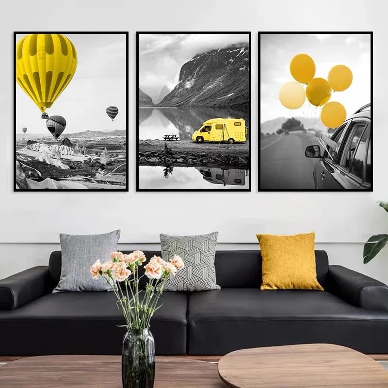 Желтый пейзаж Художественная печать воздушный шар пейзаж Картина в скандинавском стиле роспись на холсте настенные художественные Плакаты для декора гостиной icon star icon star icon star icon star icon star