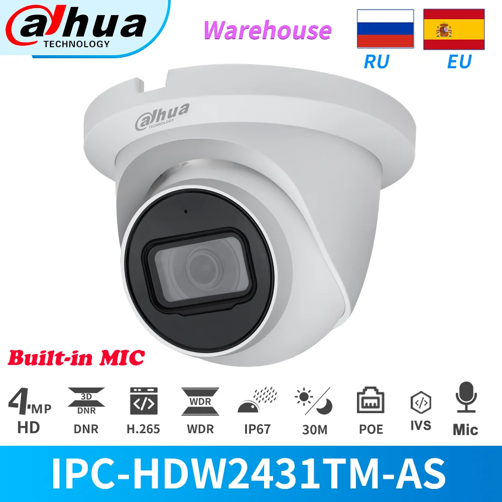 1. Оригинальная 4 МП IPC-HDW2431TM-AS-S2 купольная ip-камера Starlight * 1 2. Оригинальные аксессуары