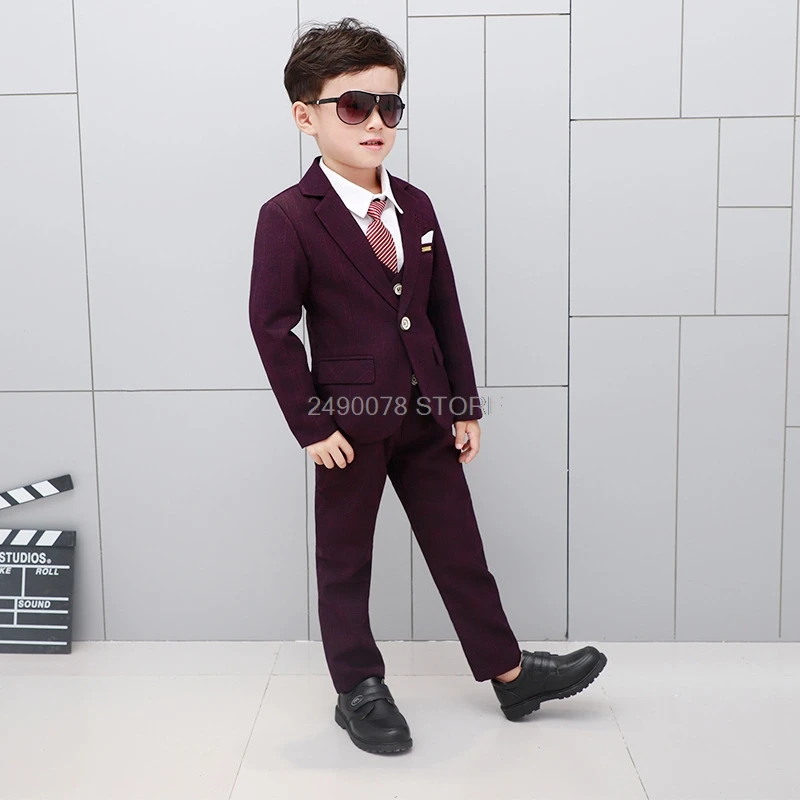 Торжественный Свадебный костюм с цветочным рисунком для мальчиков детская куртка, жилет, штаны комплект одежды из 4 предметов с галстуком-бабочкой, платье-смокинг, Детские вечерние костюмы для выступлений