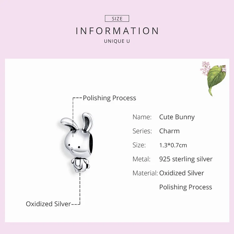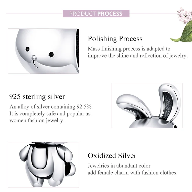 Шарм bamoer из серебра 925 пробы с изображением кролика, металличес...