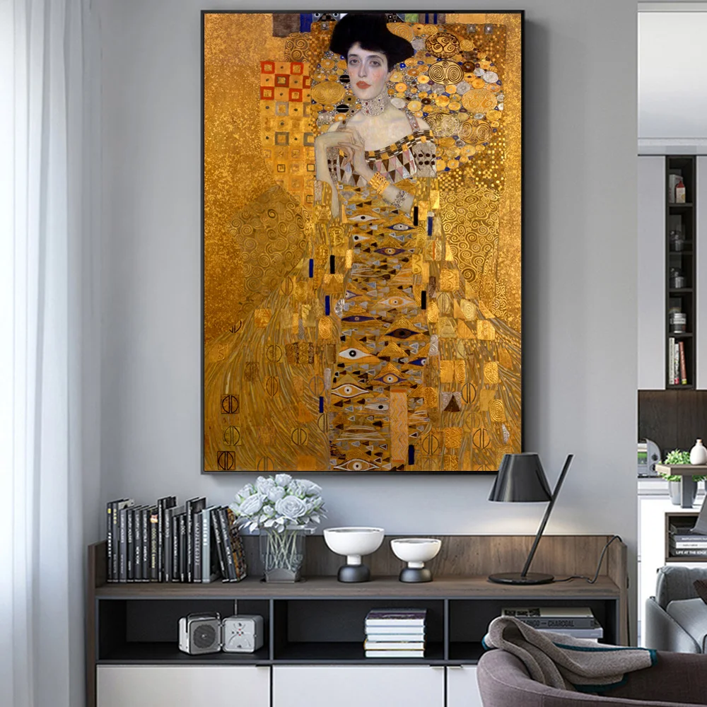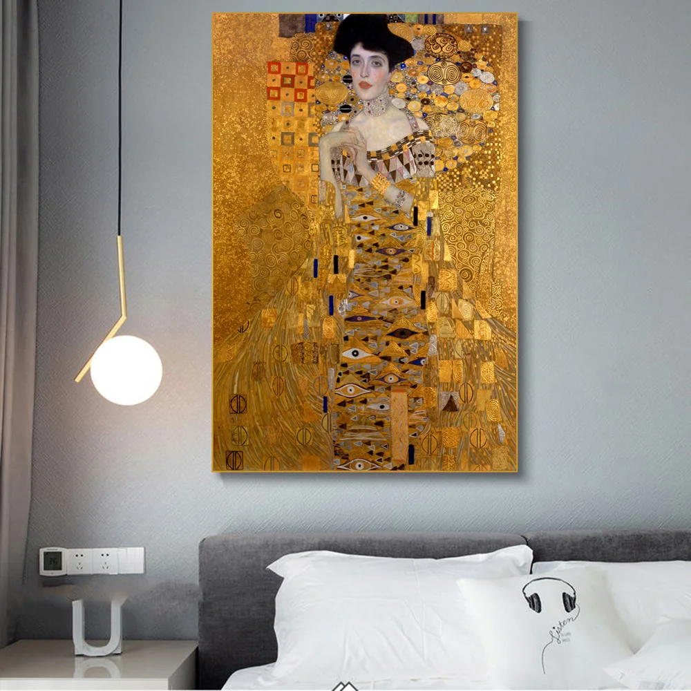 Знаменитая картина Густава Климта, женщина в золотой репродукции, Декоративные плакаты и принты для гостиной, домашний декор, Настенная картина