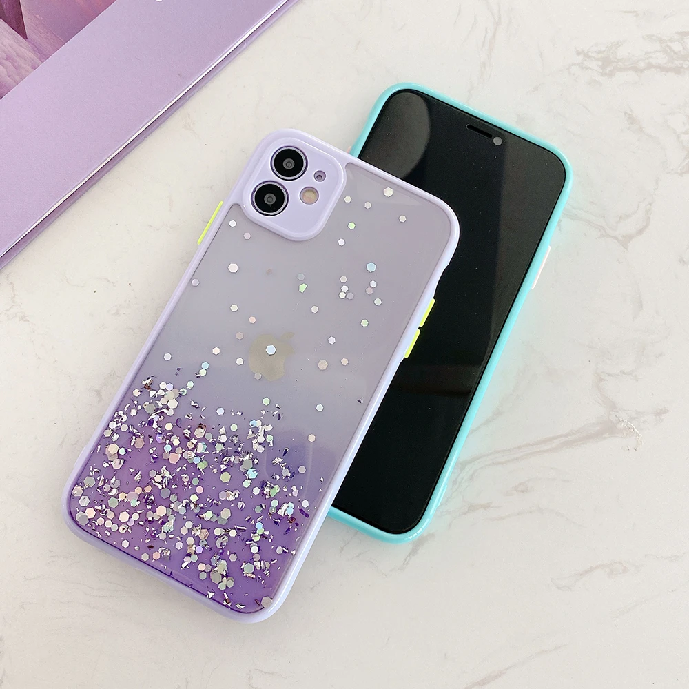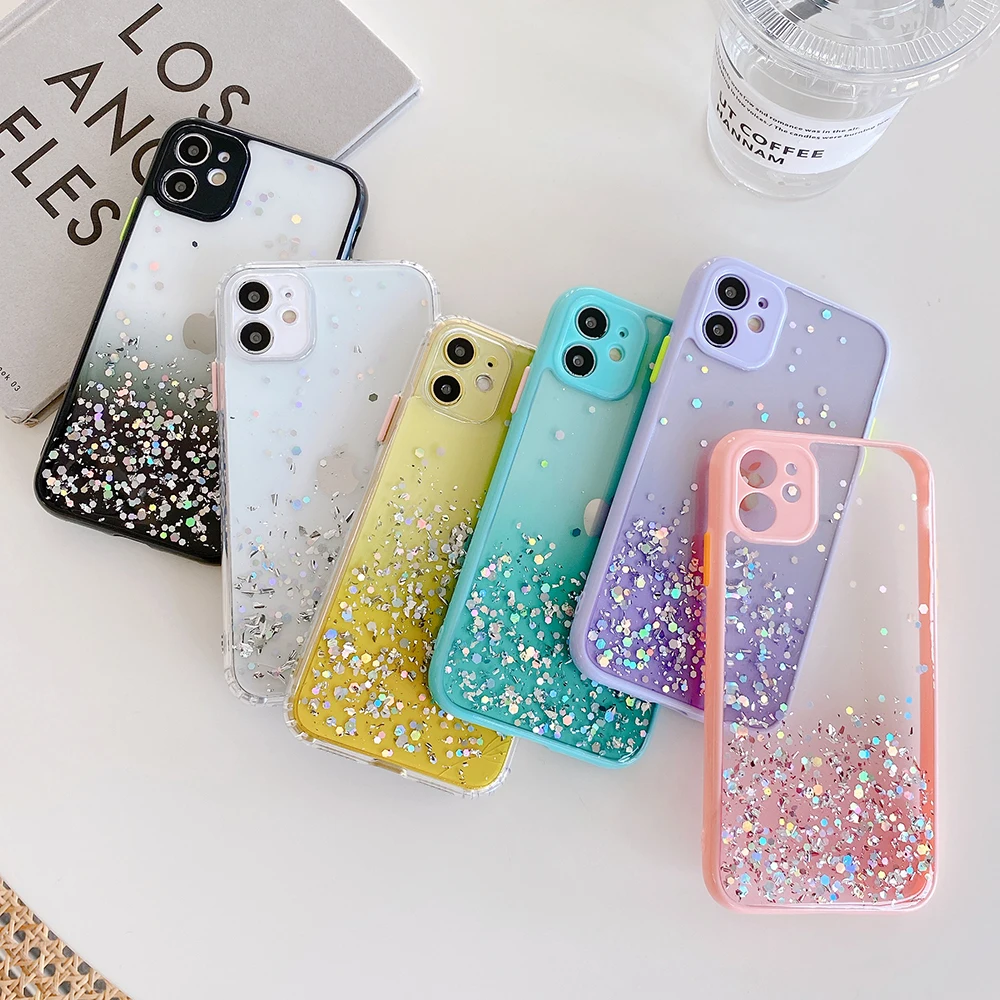 Прозрачный чехол для телефона LOVECOM с градиентом и блестками для iPhone 13 Pro Max 12 11 Pro Max XR X XS Max 7 8 Plus, Мягкий защитный чехол для камеры
