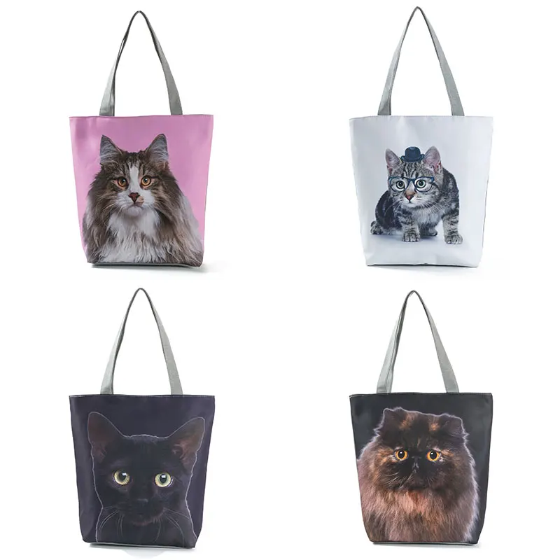 Сумка-тоут женская с принтом, Экологически чистая Сумочка для покупок, пляжный саквояж на плечо с принтом кошек