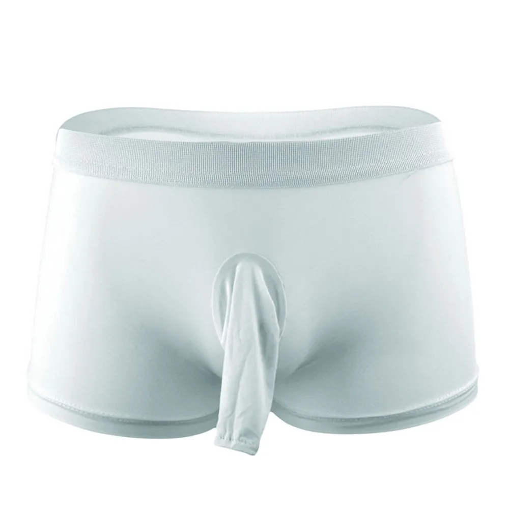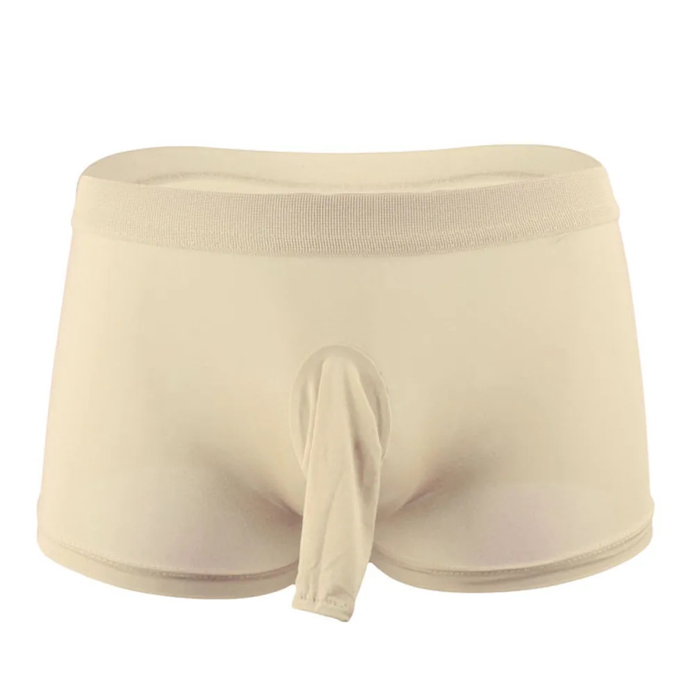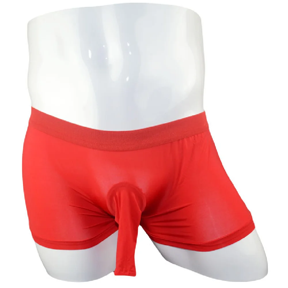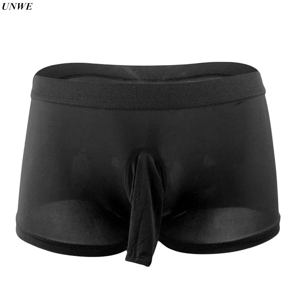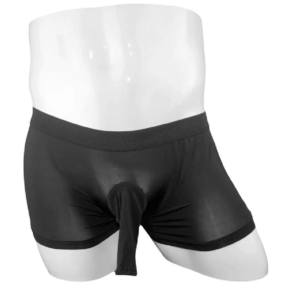 Мужские трусы-боксеры, черные дышащие трусы с мешочком для пениса, нейлоновое нижнее белье с длинным рукавом, с U-образным выпуклым мешочком