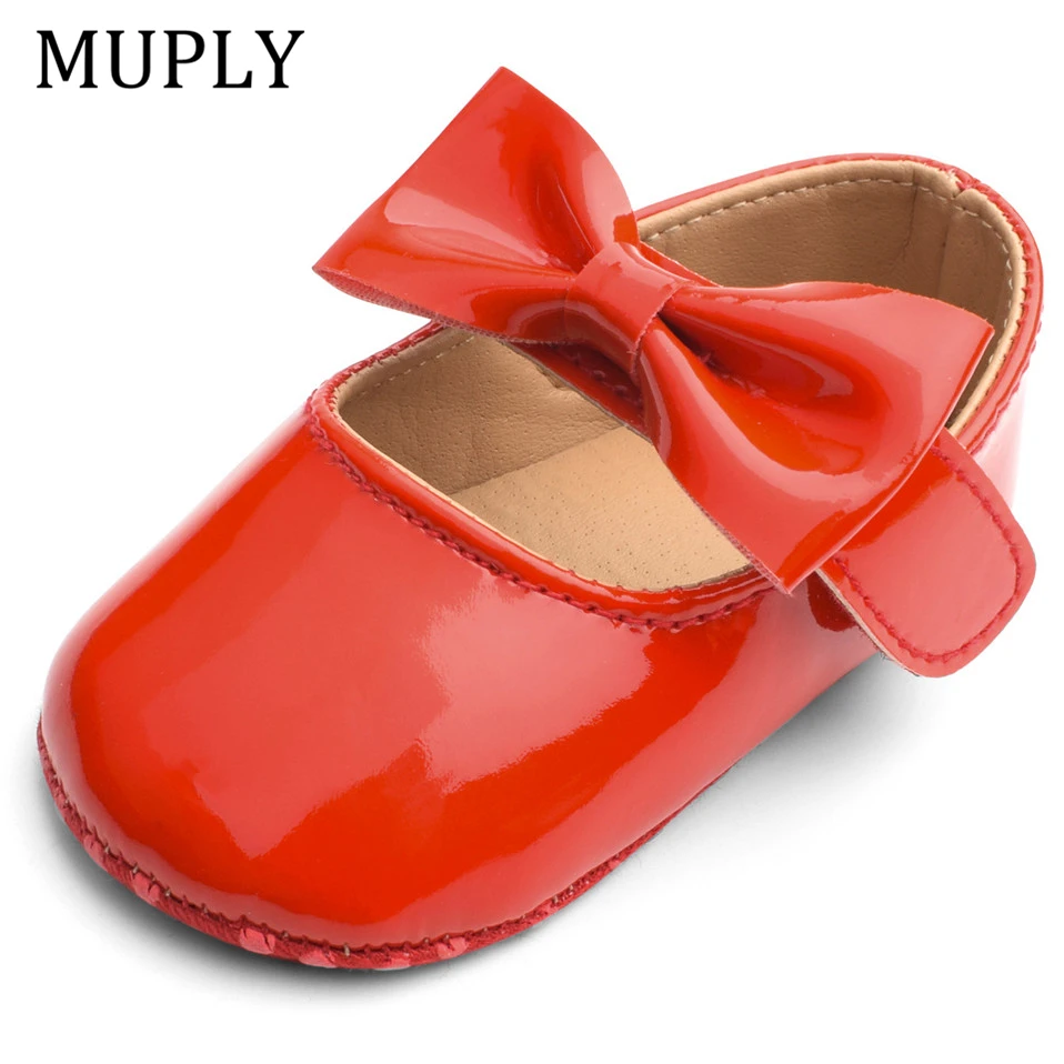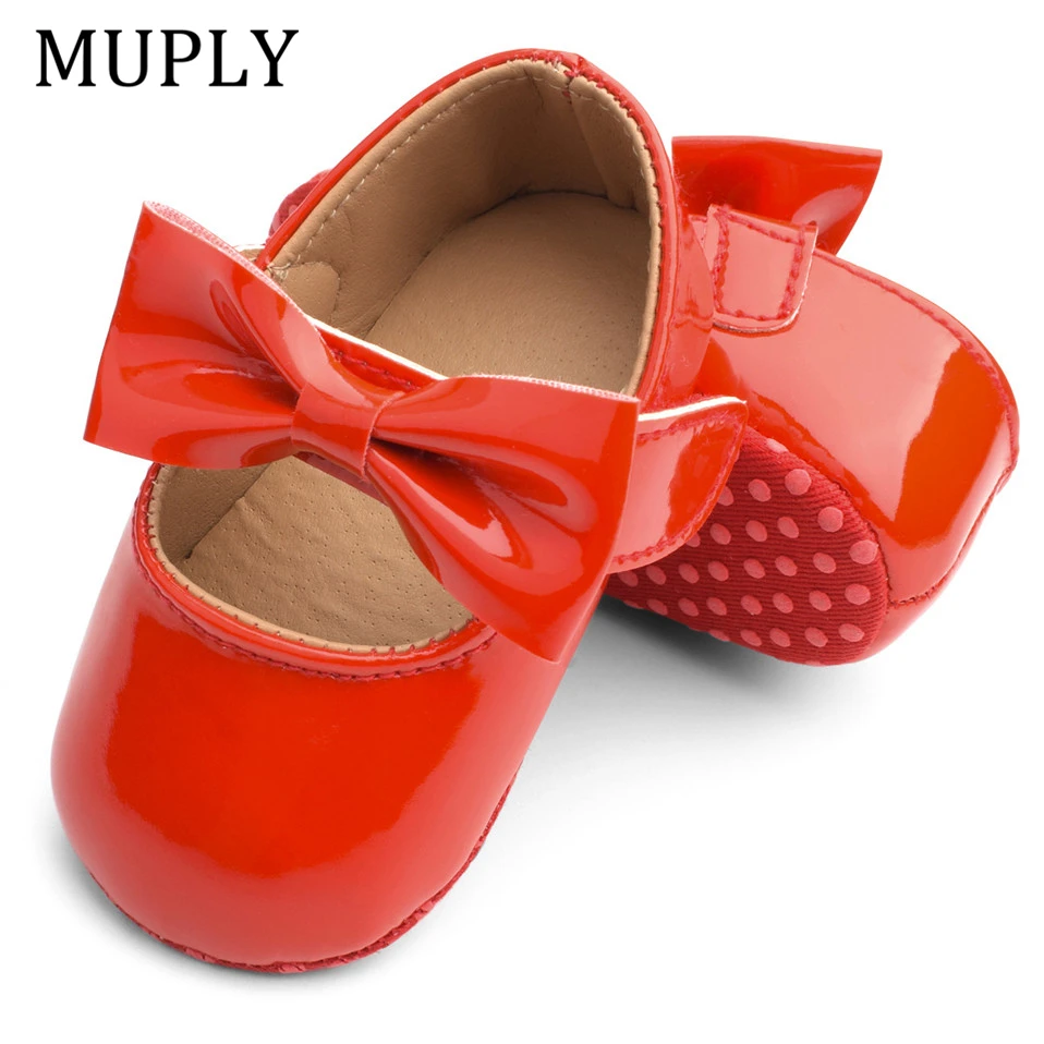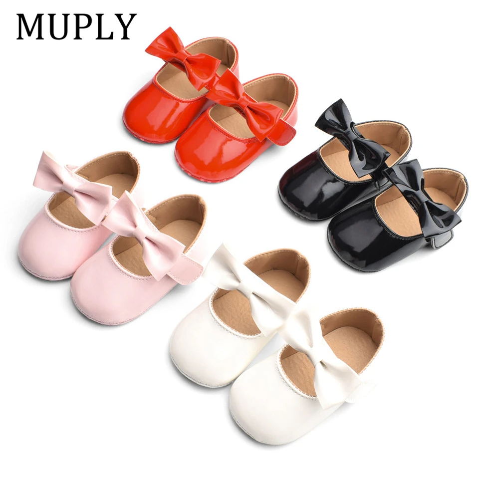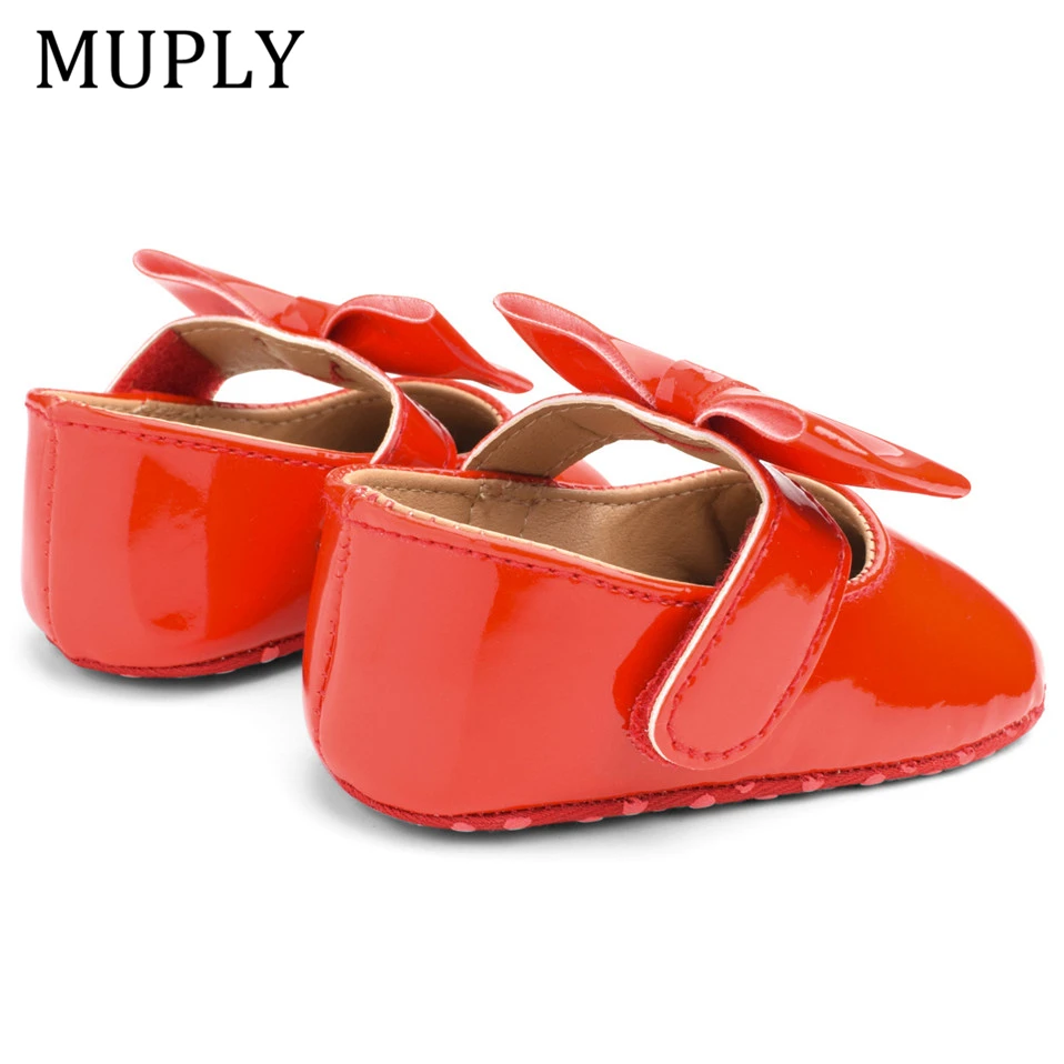 Обувь для новорожденных девочек; Обувь принцессы из искусственной кожи с большим бантом; Обувь для первых шагов на мягкой нескользящей подошве; Свадебная обувь