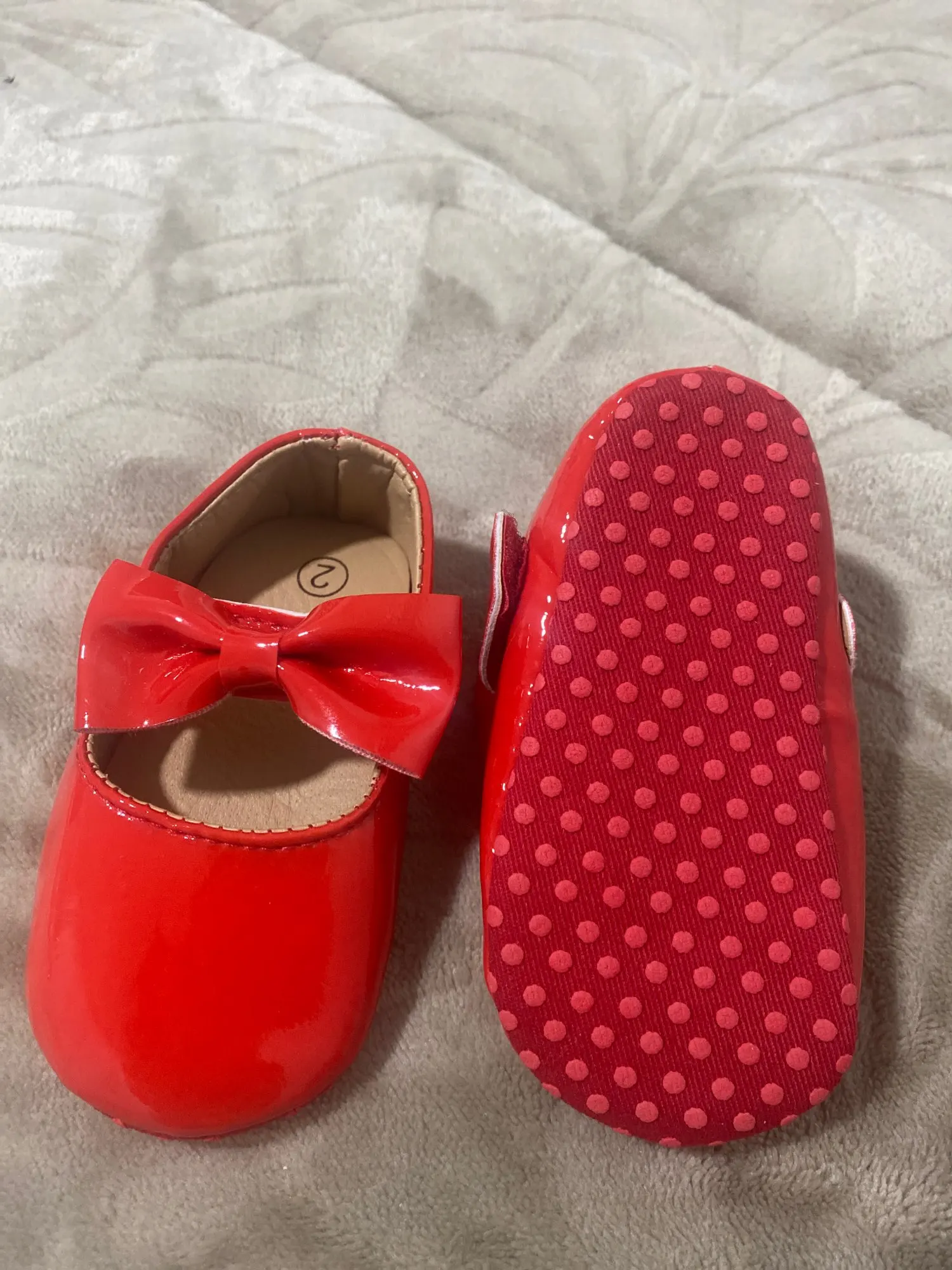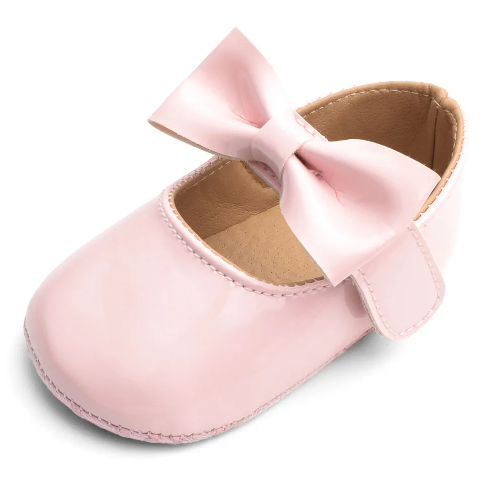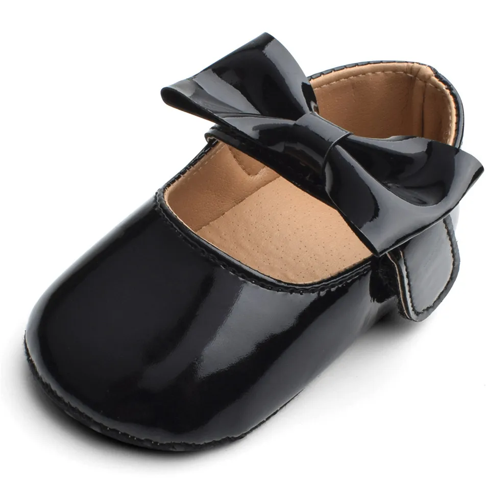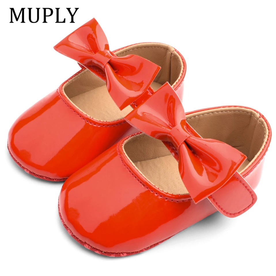 Обувь для новорожденных девочек; Обувь принцессы из искусственной кожи с большим бантом; Обувь для первых шагов на мягкой нескользящей подошве; Свадебная обувь