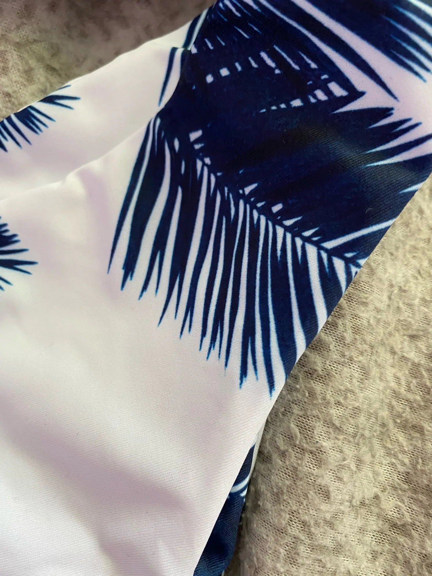 Женский комплект бикини с чашками пуш-ап и поясом с принтом листьев