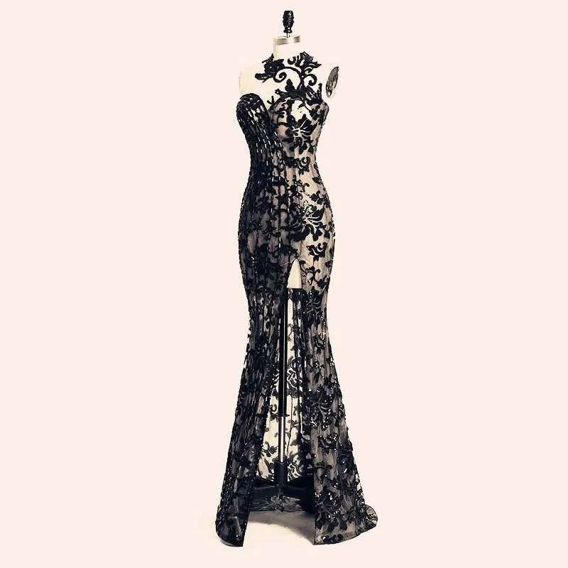 2020 элегантные вечерние платья с разрезом и бисером, Rami Salamoun, длинное платье с высоким воротником и блестками русалки, реальные изображения, дешево