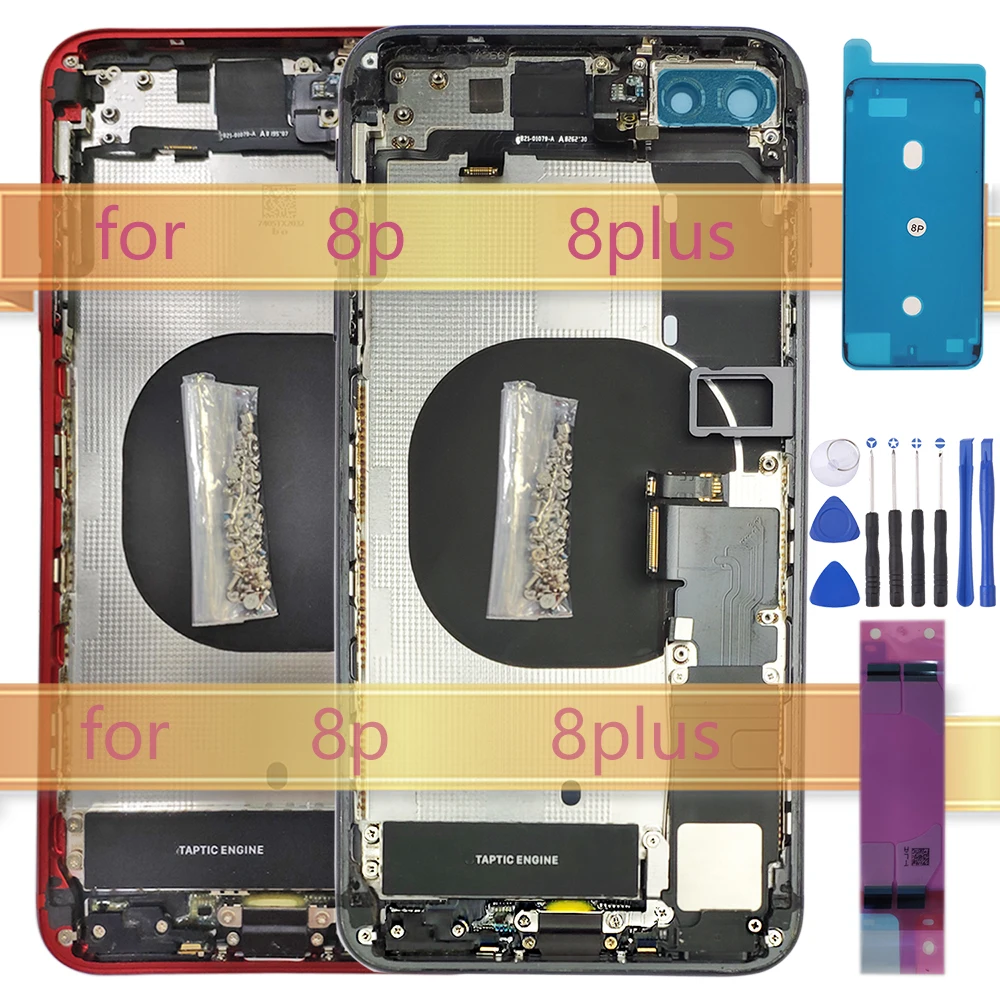 Сменная задняя крышка для IPhone 8p 8plus, задняя средняя рамка с задней крышкой батарейного отсека, черная, белая, красная, золотая