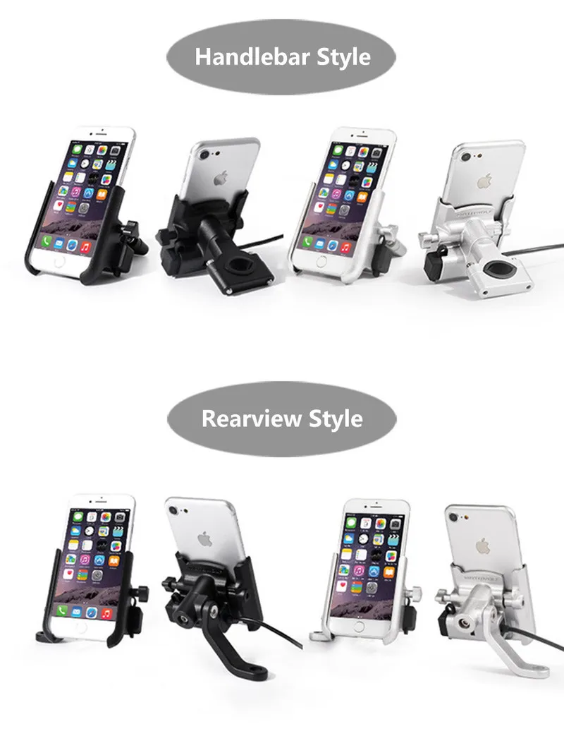 Обновленная Универсальная металлическая заряжаемая подставка для зеркала заднего вида для мотоцикла, держатель для сотового телефона, держатель для телефона на велосипед, мотоцикл