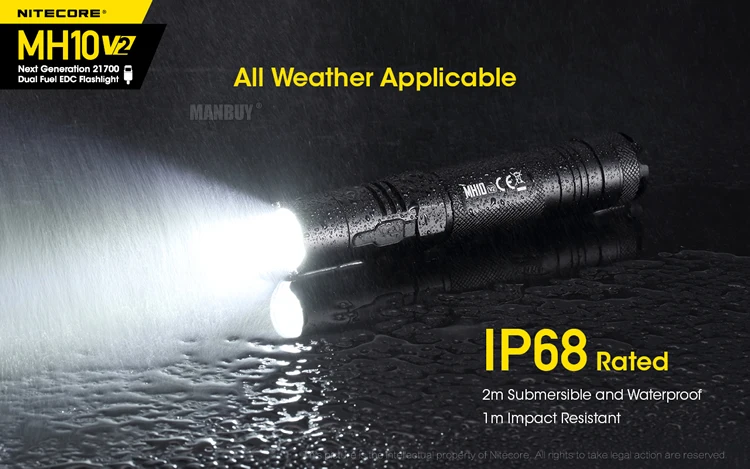 Тепло приветствуем васNitecore MH10 V2Последнее дополнение к многозадачной гибридной линии! Улучшенный в прошлом поколение, V2 теперь имеет 21700 батарею, плюс бонус 18650/CR123A журнал батареи для большей совместимости, больше люменов и впечатляющее время работы.