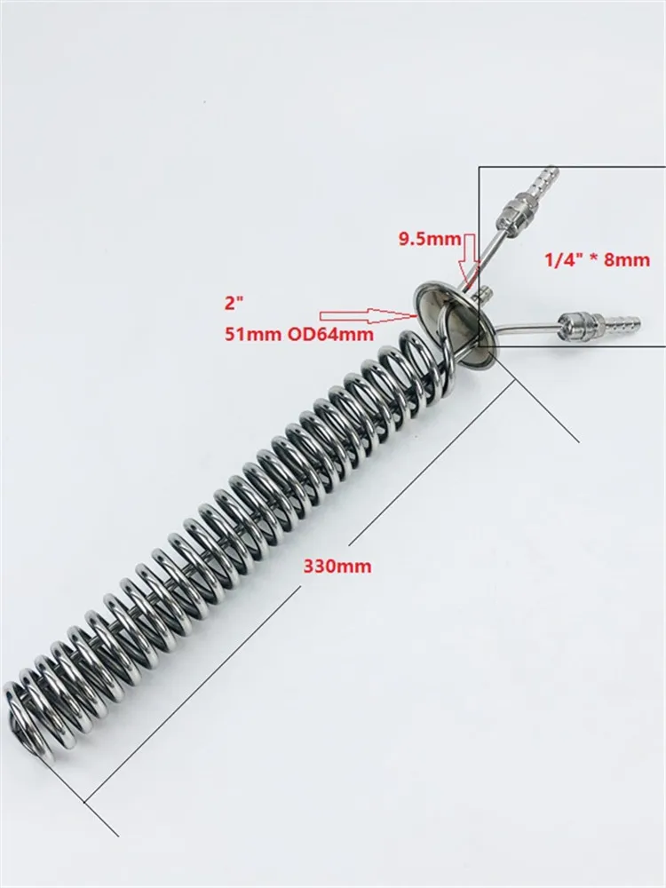 2 "три зажима санитарный дефлегматический/дистилляционный конденсатор с 2" смотровым стеклом, Труба OD 6 мм, длина 330 мм, рефлюкс, димрот, SS304Спиральная труба из нержавеющей стали 304Длина 330 мм с соединением с внутренней резьбой 1/4 "MNPTСоединитель шланга 1/4 "* 8 мм-2 шт.Список товаров:2 "рефлюкс/димрот 330 мм --- 1 шт.2 "диаметр смотрового стекла 365 мм --- 1 шт.2 "три зажима с силиконовой прокладкой --- 1 шт.Соединитель шланга 1/4 "* 8 мм-2 шт.
