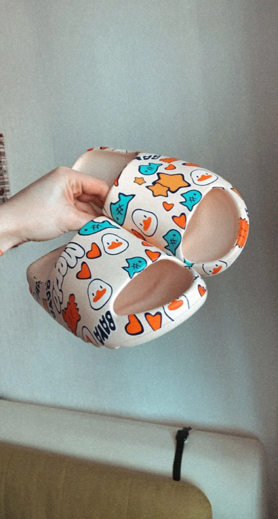 Для таких тапочек цена мне кажется завышенной. Или хотя бы уберите платную доставку, аж в 300 рублей. Не увидела разницы между бесплатной доставкой, которой отправляют почти все товары, и этой... Качество печати оставляет желать лучшего, где то картинка наполовину только есть, и кажется что со временем они и во все сотрутся )) посмотрим. В целом не плохо, лёгкие, удобные. Внутри были вкладыши, дабы не повредить сами тапки. Но не за 1000 рублей ))