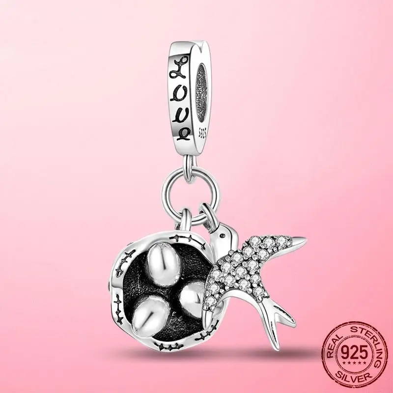 Женская серебряная модель, божья коровка, змея, единорог, семейное дерево, бусины, подходят для оригинального браслета Pandora, Серебряное изготовление своими руками