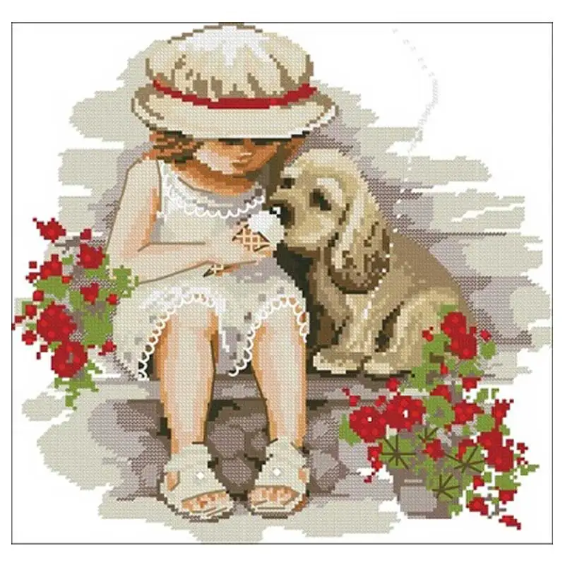 Топ узоры девушки и собаки считаются вышивкой крестиком 11CT 14CT 18CT китайские наборы для вышивки крестиком Сделай Сам наборы для вышивки