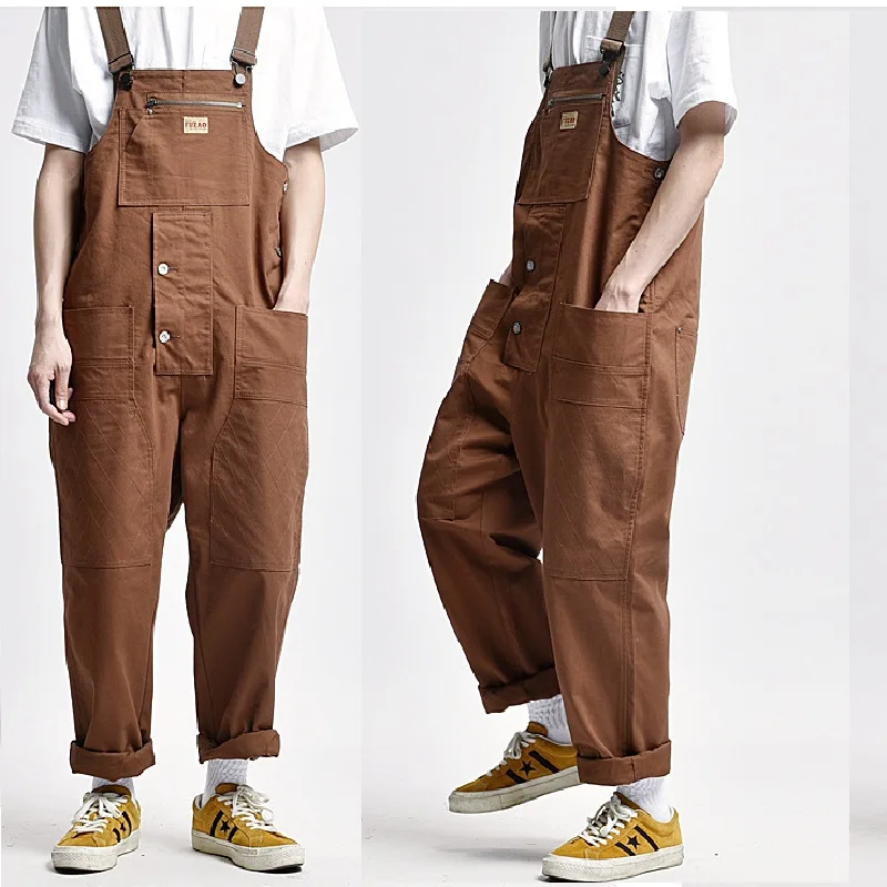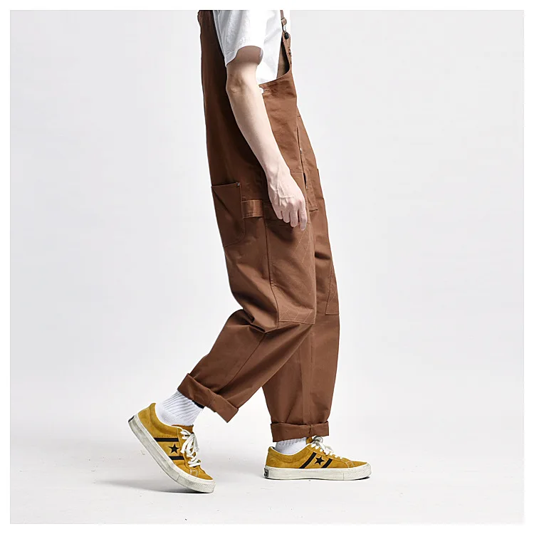 Новое поступление 2020, Модные Разноцветные Повседневные мужские брюки с высокой талией и несколькими карманами, японские рабочие цельные Брендовые брюки с ремнем, мягкие и удобные брюки на подтяжках, мужские уличные комбинезоны в стиле хип-хоп, штаны на бретелях, рабочие брюки-карго для сафари, свободные рабочие брюки-карго повседневные мужские брюкиРазмер: M L XL 2XLМатериал: смешанный хлопокИнформация о размере:
