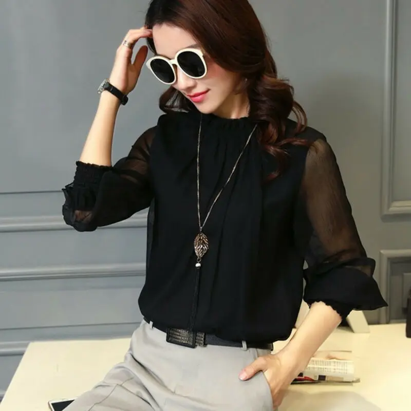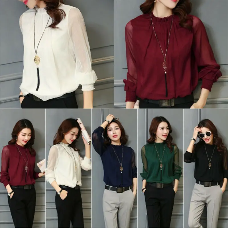 Женская шифоновая блузка с длинным рукавом и воротником-стойкой