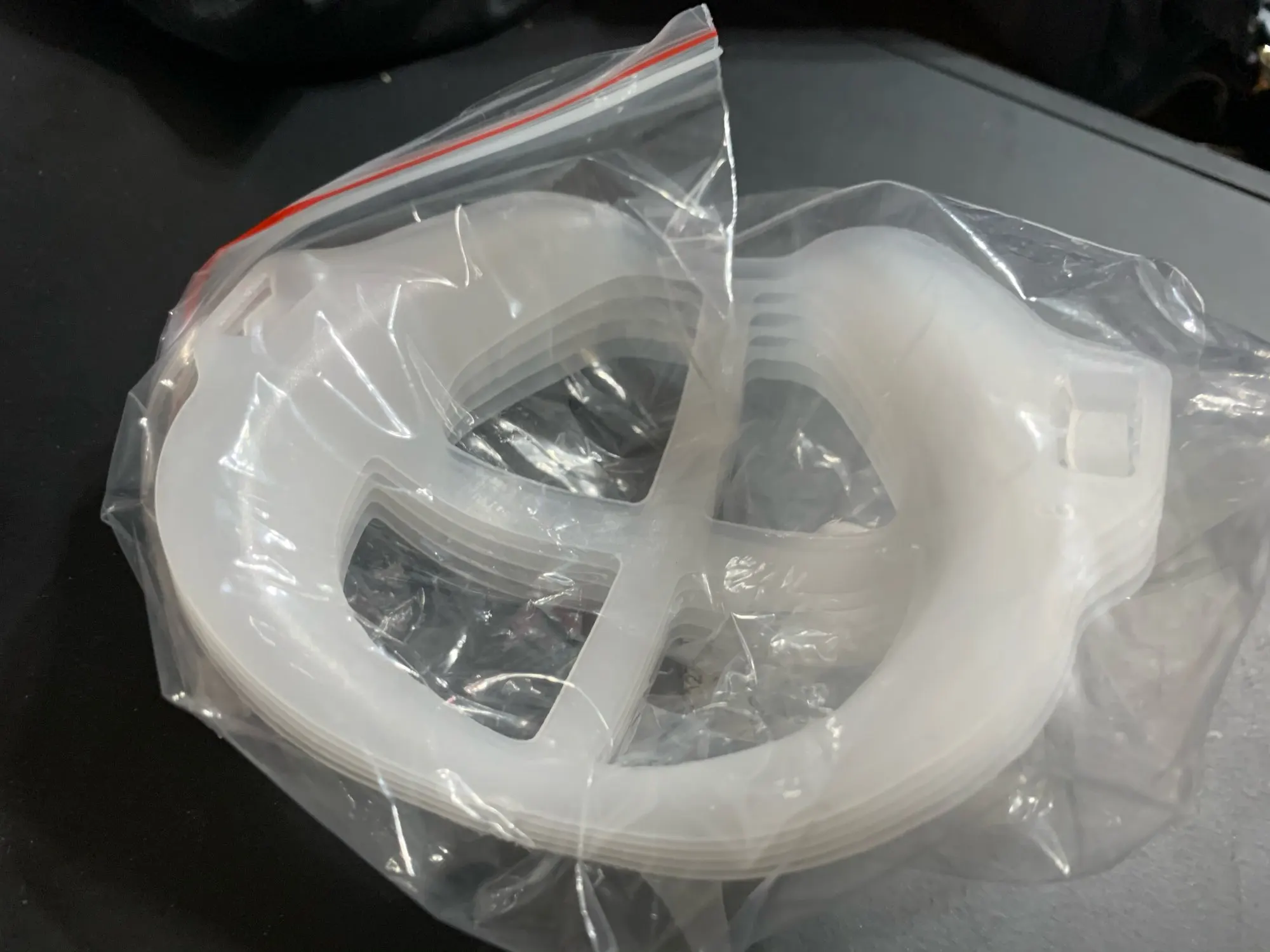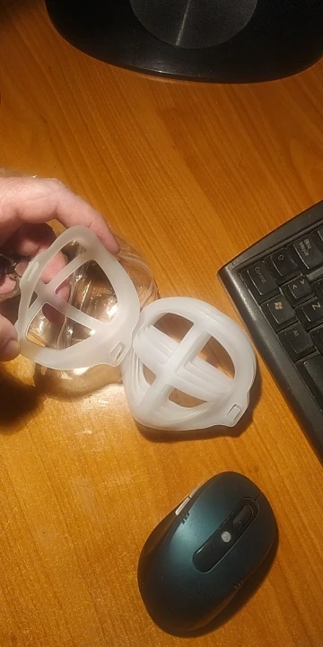 Они прибыли очень скоро. Полужесткий материал, они маленькие, облегчают дыхание и не переносят маску, прикрепленную к рту, очки по-прежнему тускнеют.