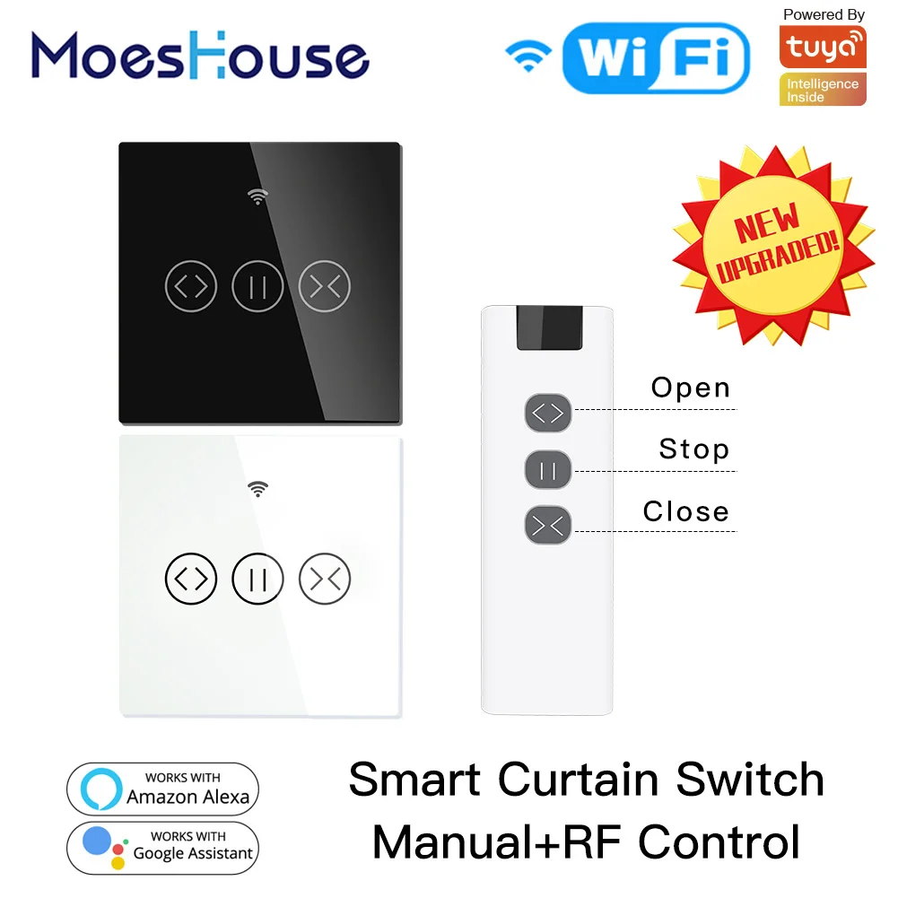 WiFi RF433 умная сенсорная панель занавески жалюзи переключатель рольставни (2/3 пути) мульти-контроль Tuya Смарт жизни приложение реле состояние и подсветка переключатель беспроводной MHz433 дистанционное управление моторизованный занавес двигатель необходим, работает с Alexa Echo Google Home