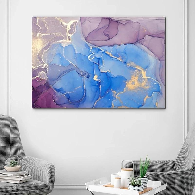 Абстрактный постер с текстурой мрамора и синим золотом, настенный х...