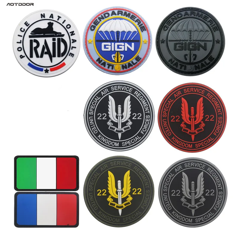 ПВХ Франция GIGN рейд патчи Италия спецназ крюк петля резиновый Тактический значок военный флаг патчи