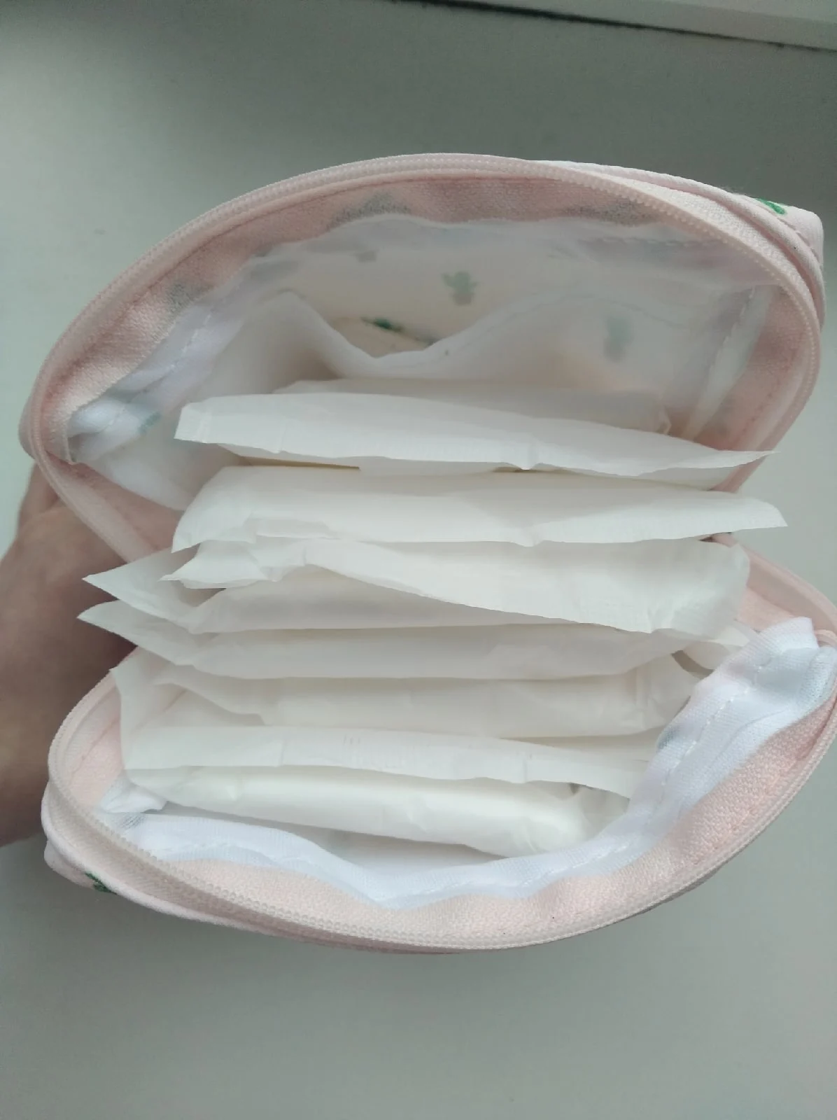 У меня двое мальчиков и теперь спрятаны прокладки , нет на виду этих пачек. Сумочка очень вместительная , советую