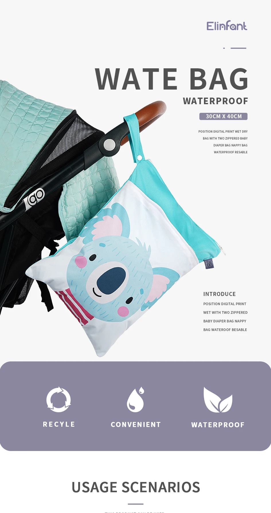 Сумка Elinfant для детских подгузников, смены пеленок, на коляске, с подвесная сумка-Органайзер рисунком, с мультяшным рисунком, двойная молния, 30*40 см