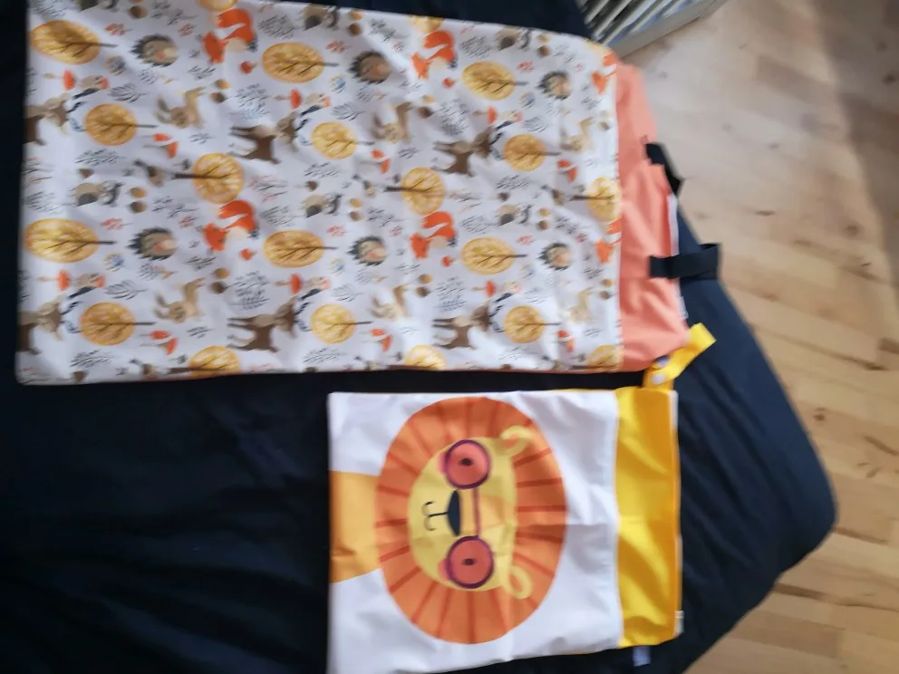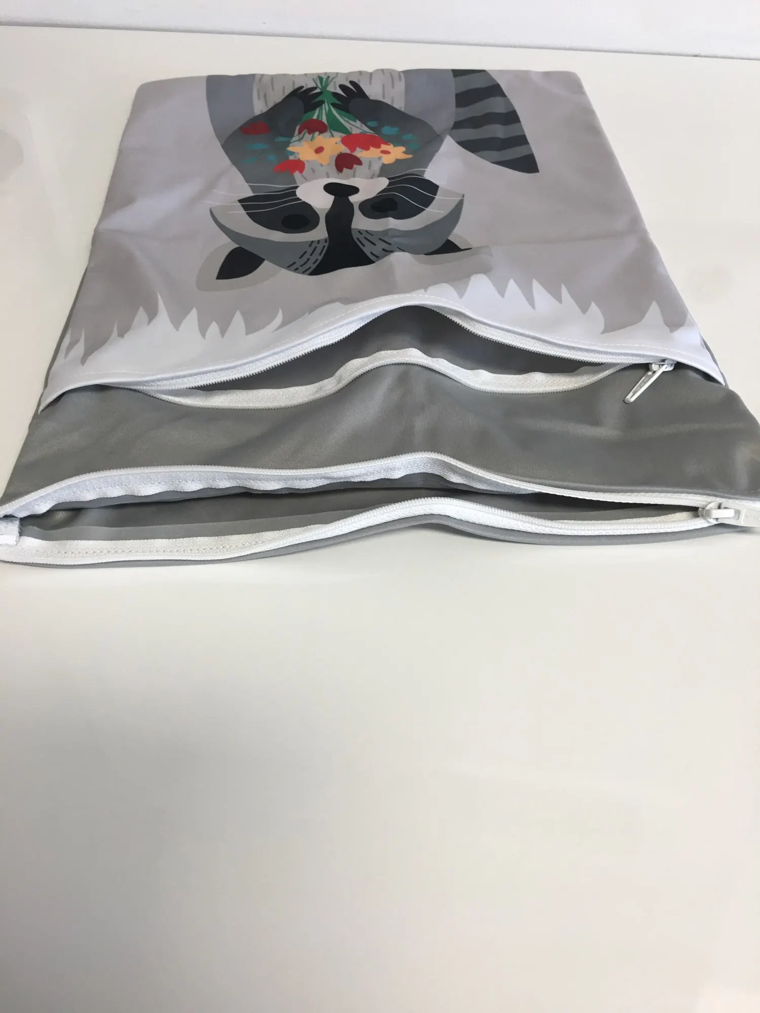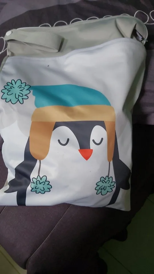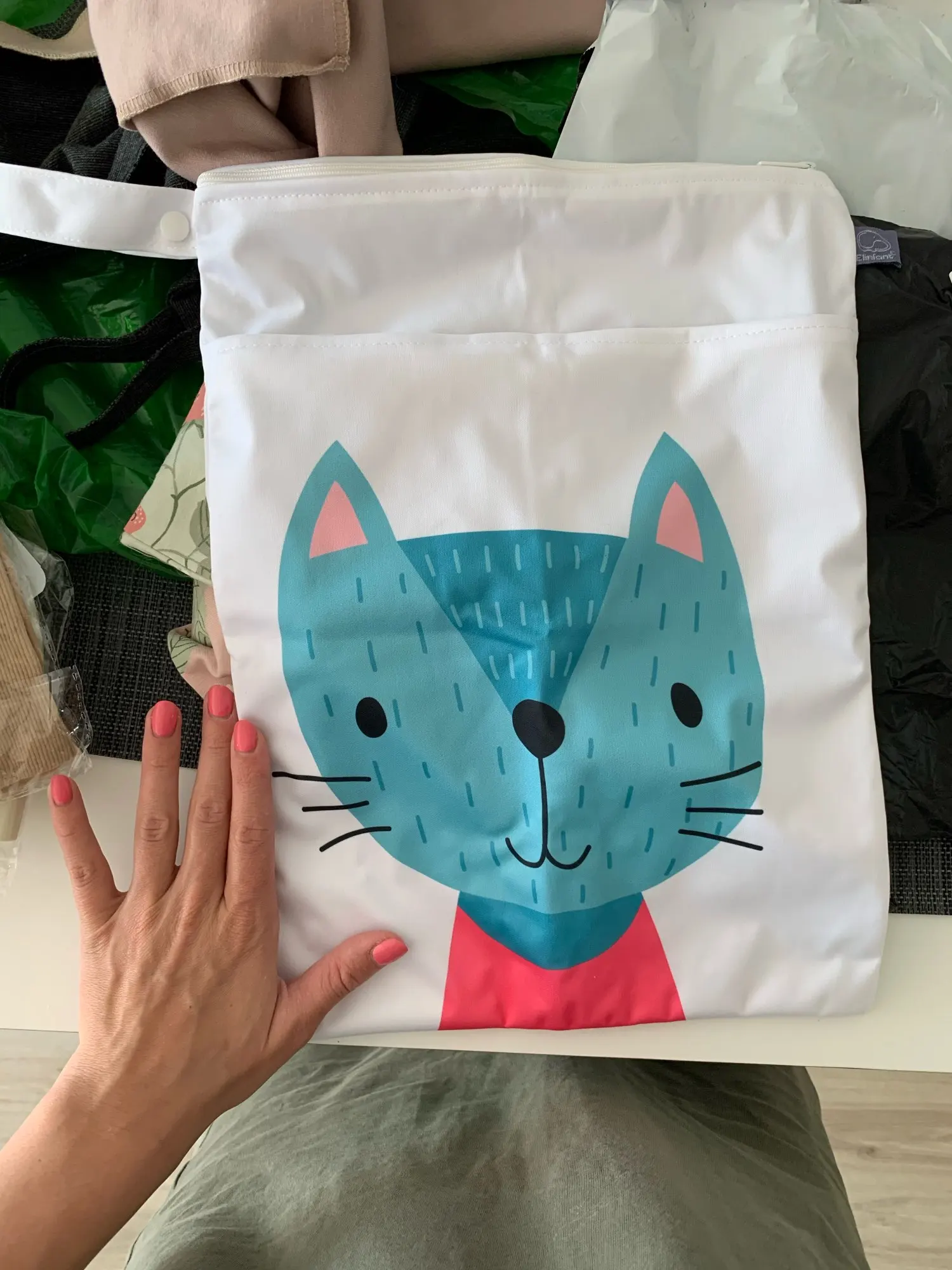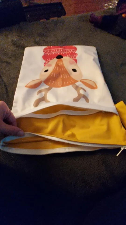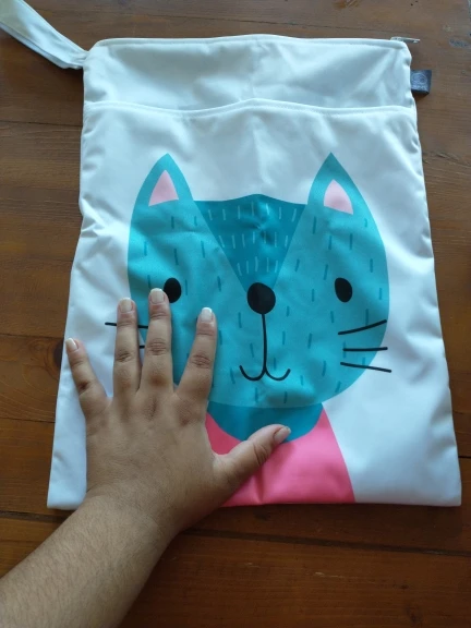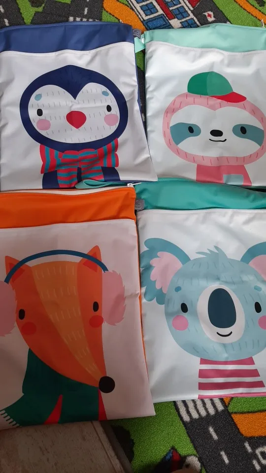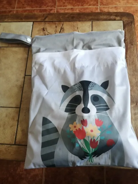 Я заказал две Влажные Сумки. Они прибыли очень своевременно. Изображения спереди (енот и Ежик) очень милые и выглядят точно так же, как на фотографиях. Сумки очень большие (высота: ~ 40 см для основной части, ~ 32 см для переднего кармана. W: ~ 28,5 см). Есть два отделения, каждый на молнии. Вверху находится защелкивающаяся ручка. Одна сумка была сшита немного плотнее, чем другая, что делает ее немного меньше на 1 см. Она все еще идеально подходит для использования. В целом я очень доволен товаром и буду рекомендовать. Я еще не испытал их влажным.