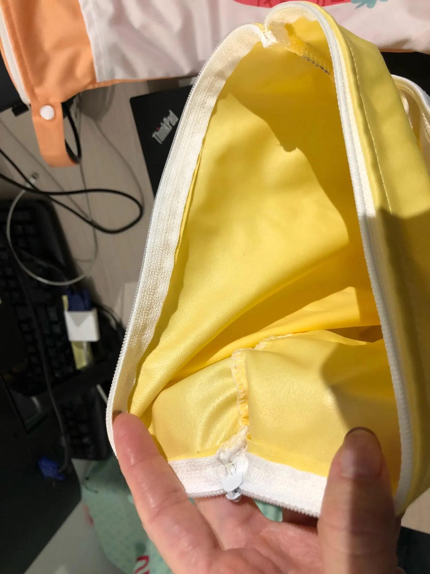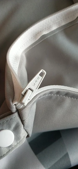Сумка, как на фото, мне очень понравилось. С 2 молниями. Верхняя часть и другая, где белая ткань заканчивается.