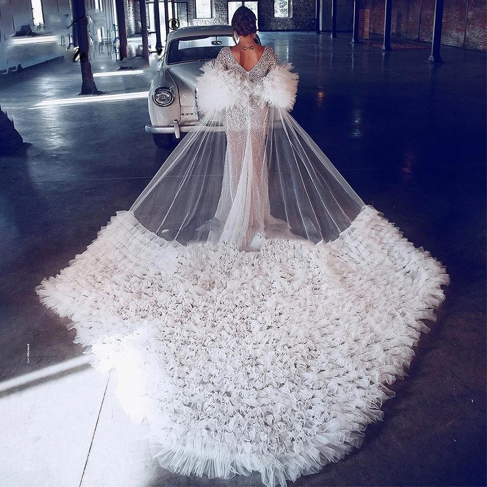 Платье-Русалка для выпускного вечера, с тяжелыми бусинами, роскошное Пышное вечернее платье со шлейфом, шикарное официальное платье для вечеринки
