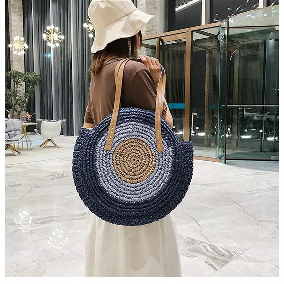 Соломенные сумки женские, ручная работа, круглые пляжные сумки из р...