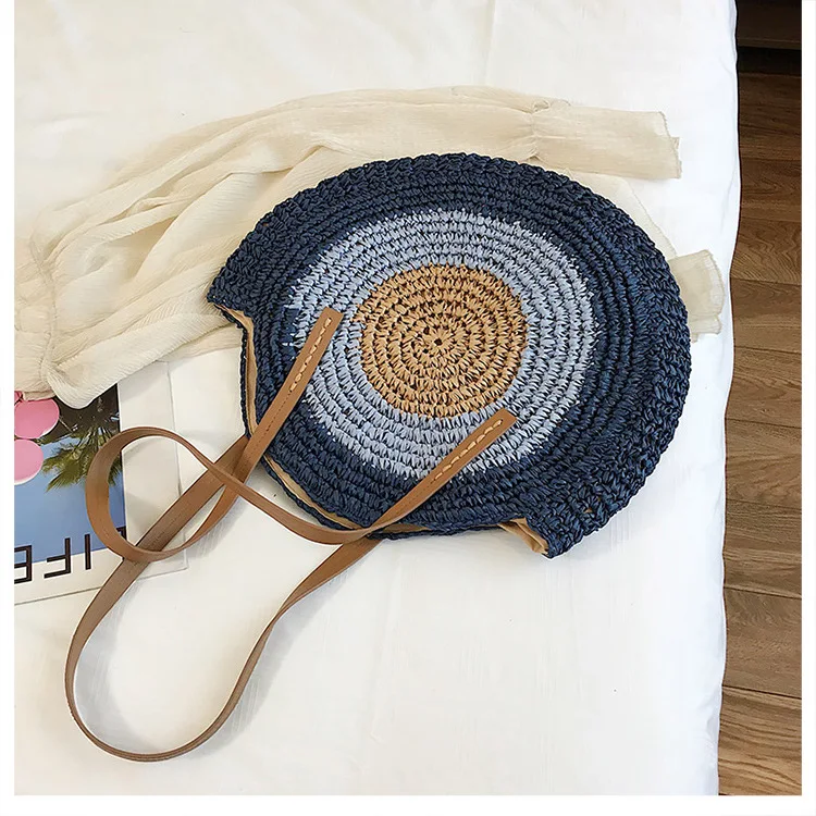 Круглая Соломенная Сумка для женщин, повседневная плетеная пляжная ...