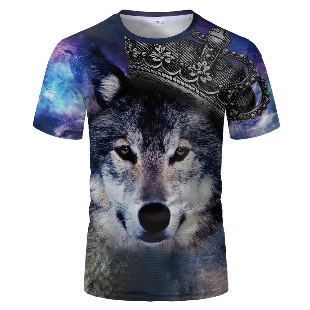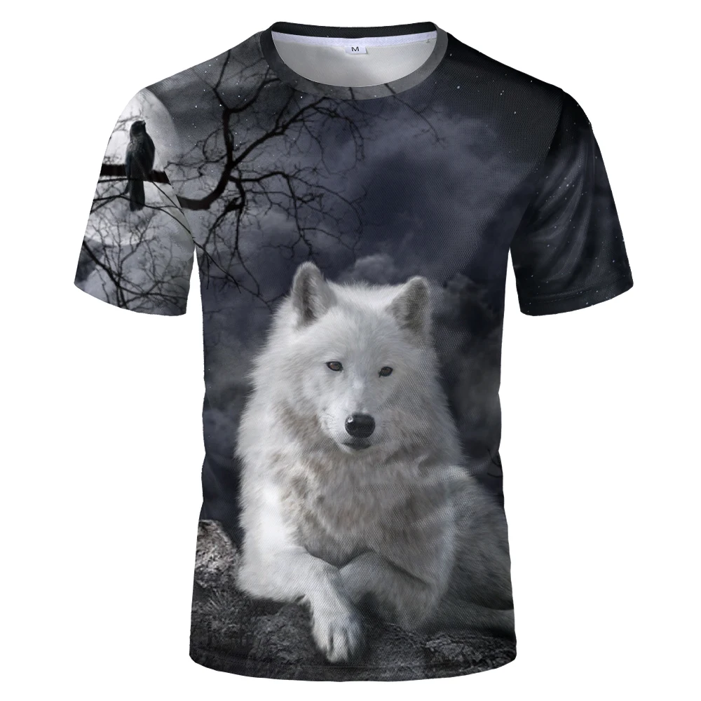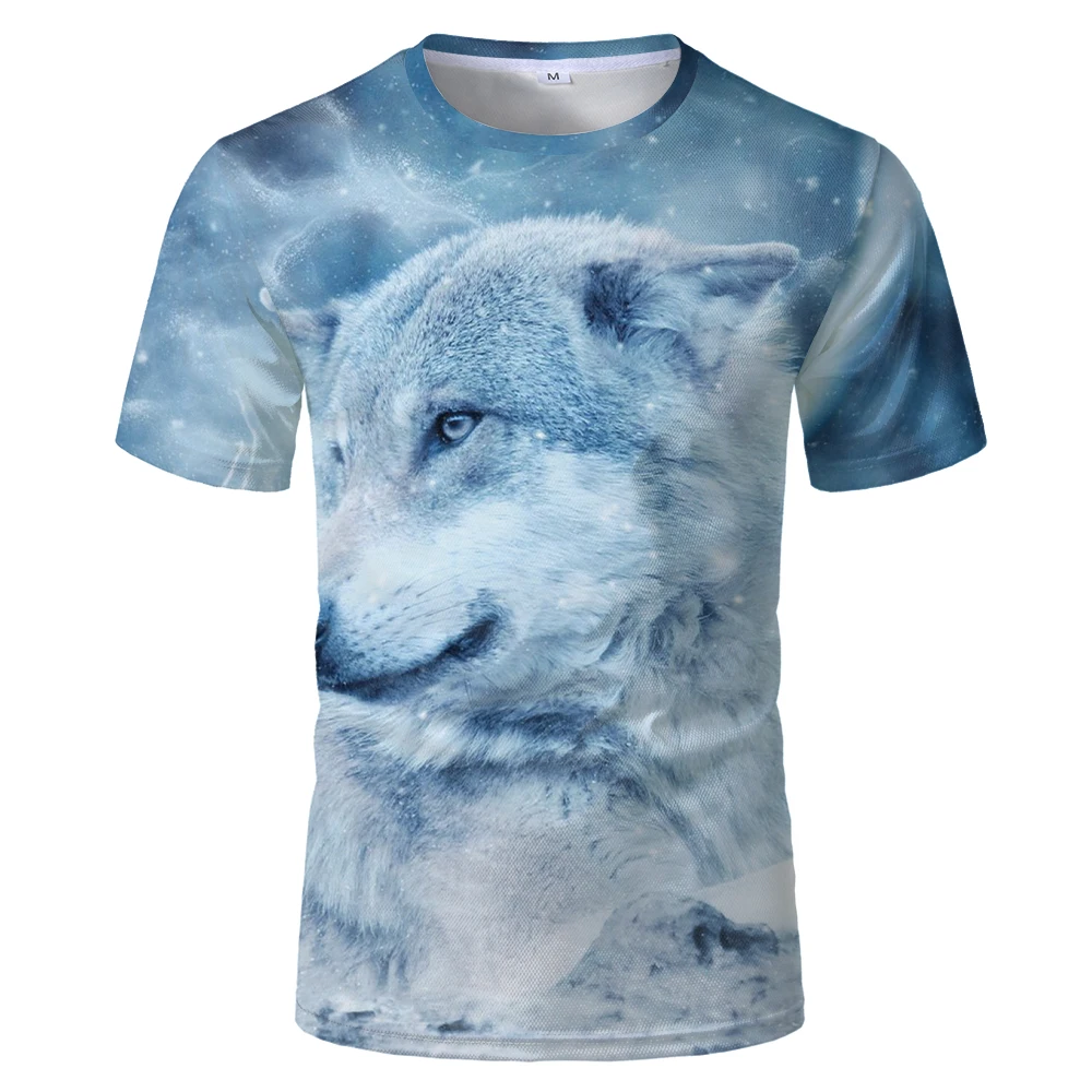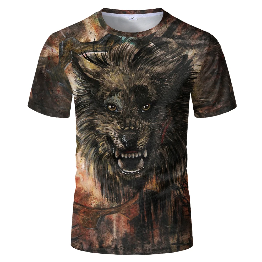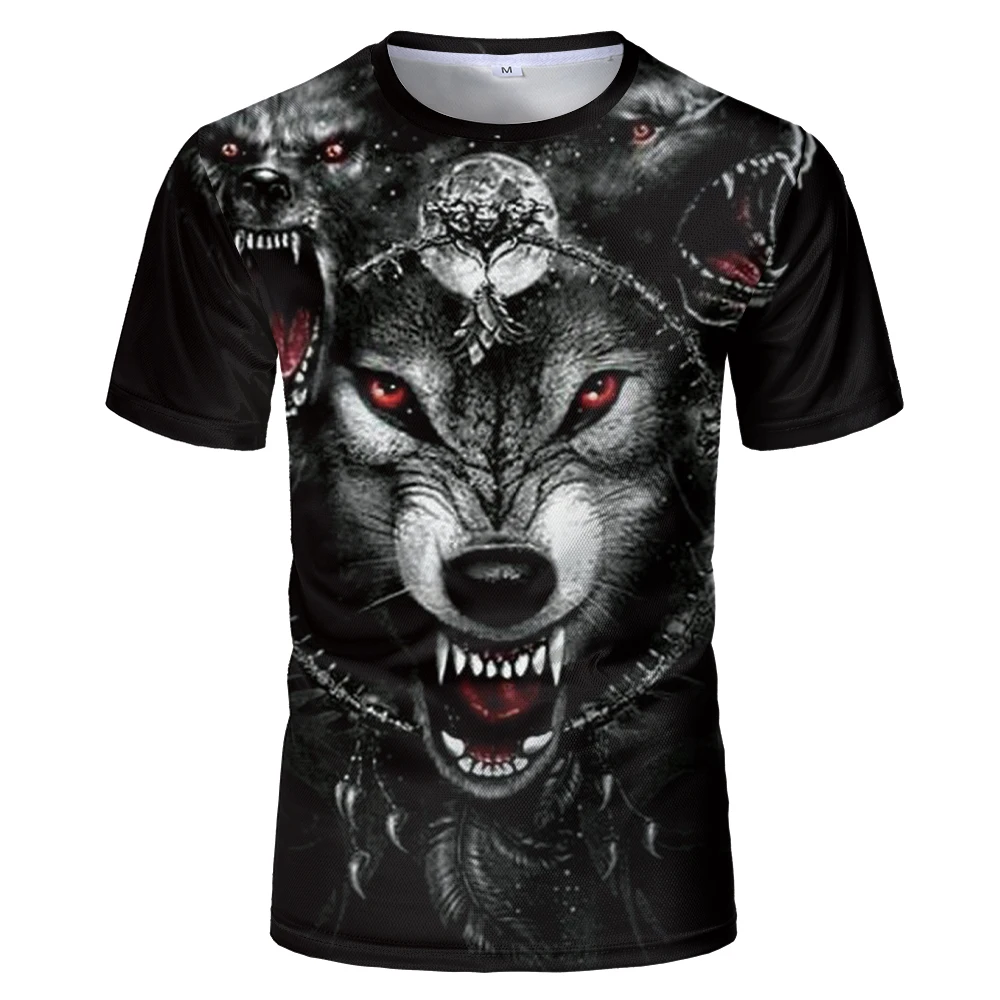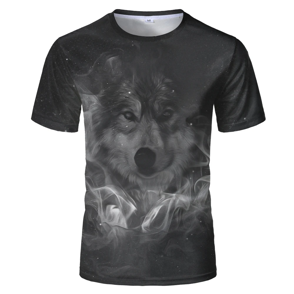 Мужская футболка с 3D-принтом волка, летняя дышащая футболка с коро...